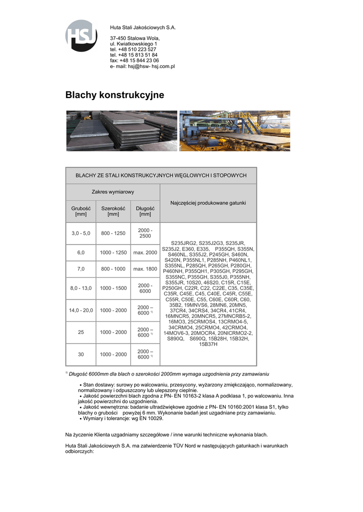 Blachy konstrukcyjne - Huta Stali Jakościowych SA