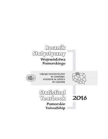 ZESPÓŁ REDAKCYJNY EDITORIAL BOARD Przewodniczący President Jerzy Auksztol Redaktor główny Editor-in-chief Małgorzata Buńko Członkowie Members Beata Bojarska, Barbara Brzezińska, Arkadiusz Grzenia Anna Mistrzak, Aleksandra Sarnowska, Alicja Smoleń, Magdalena Wiktor Opracowanie merytoryczne Zespół pracowników Urzędu Statystycznego w Gdańsku Redakcja techniczna, tłumaczenie, grafika i skład komputerowy Pomorski Ośrodek Badań Regionalnych Referat Analiz i Opracowań Zbiorczych Projekt okładki Editorial supervision Team of the Statistical Office in Gdańsk Technical supervision, translation, computer graphics and typesetting Pomeranian Centre for Regional Surveys Department of Analyses and Aggregated Studies Cover design Lidia Motrenko-Makuch Druk okładki Zakład Wydawnictw Statystycznych w Warszawie WYDAWCA Printing of cover Statistical Publishing Establishment in Warsaw EDITOR Urząd Statystyczny w Gdańsku Statistical Office in Gdańsk ul. Danusi 4, 80-434 Gdańsk tel. 58 768-31-00, 58 768-31-30 fax 58 768-32-70, e-mail: [email protected] http://gdansk.stat.gov.pl Przy publikowaniu danych US prosimy o podanie źródła When publishing SO data please indicate source ISSN 1640-0046 Druk: Zakład Wydawnictw Statystycznych, 00-925 Warszawa, Al. Niepodległości 208 Nakład: 112 egz. Format B-5. Cena 27,00 zł. Oddano do druku: grudzień 2016 r. Przedmowa Urząd Statystyczny w Gdańsku przekazuje Państwu kolejne wydanie Rocznika Statystycznego Województwa Pomorskiego. Publikacja prezentuje obszerny zestaw informacji statystycznych charakteryzujących sytuację społeczno-gospodarczą oraz stan środowiska naturalnego województwa. Dane statystyczne pogrupowane zostały w 23 działach tematycznych. Poprzedzają je uwagi ogólne (zawierające obszerne wyjaśnienia metodyczne i zakresowe) oraz tablice przeglądowe. Całość wzbogacona została wykresami. Obecną edycję Rocznika uzupełniono o dane dotyczące prognozy gospodarstw domowych na lata 2016-2050 oraz stanu zdrowia ludności na podstawie wyników reprezentacyjnego badania „Europejskie Ankietowe Badanie Zdrowia”. Publikacja, poza wydaniem książkowym, dostępna jest na płycie CD oraz na stronie internetowej Urzędu http://gdansk.stat.gov.pl. Oddając do rąk Państwa publikację Rocznik Statystyczny Województwa Pomorskiego 2016 dziękuję wszystkim osobom i instytucjom za przekazane informacje, które stanowią cenną inspirację do kształtowania i wzbogacania jego treści. Mam nadzieję, że zaprezentowane informacje okażą się interesujące i zachęcą Państwa do analizy i obserwacji przemian zachodzących w społeczno-gospodarczej strukturze naszego województwa. Czytelnikom zainteresowanym danymi według podregionów, powiatów i gmin polecam wydawaną przez Urząd Statystyczny w Gdańsku, równocześnie z Rocznikiem, pozycję – Województwo Pomorskie 2016 – Podregiony, Powiaty, Gminy. Jerzy Auksztol Dyrektor Urzędu Statystycznego w Gdańsku Gdańsk, grudzień 2016 r. Preface The Statistical Office in Gdańsk presents a successive edition of The Statistical Yearbook of the Pomorskie Voivodship. The publication comprises a wide range of statistical information characterizing the social and economic situation, as well as the condition of the natural environment in the voivodship. Statistical data are grouped in 23 thematic chapters. They are preceded by general notes (including detailed explanation of methodology and scope of the study) and the review tables. The publication is enriched with graphs. The current edition is enriched with the data of the projection on households for the years 2016-2050 as well as data concerning health condition of the population on the basis of the ”European Health Interview Survey” results. This publication, apart from printed edition, is also available on CD and the website of the Office http://gdansk.stat.gov.pl. Presenting the publication The Statistical Yearbook of the Pomorskie Voivodship 2016 I would sincerely like to thank all persons and institutions for their information and suggestions which have provided valuable inspiration for shaping and enriching the content of the Yearbook. I hope that the information presented here will raise interest and encourage readers to analyze and observe the changes taking place in the socio-economic structure of our voivodship. To the readers interested in acquiring data by subregions, powiats and gminas, I recommend a separate, issued simultaneously with the Yearbook, publication Pomorskie Voivodship 2016 – Subregions, Powiats, Gminas. Jerzy Auksztol Director of Statistical Office in Gdańsk Gdańsk, December 2016 SPIS RZECZY CONTENTS CONTENTS 5 Str. Page Przedmowa .......................................................... Preface ................................................... 3-4 Spis tablic i wykresów ....................................... List of tables and charts ...................... 6-21 Objaśnienia znaków umownych. Skróty .......... Symbols. Abbreviations ....................... 22-23 Uwagi ogólne ...................................................... General notes ........................................ 24-29 Tablice przeglądowe 30-35 36-53 I. Województwo na tle kraju w 2015 r. ......... Review tables Voivodship on the background of the country in 2015 ................................... II. Ważniejsze dane o województwie ............ Major data on the voivodship .................. Działy Chapters I. Geografia .................................................. Geography .............................................. 54-57 II. Environmental protection ........................ Administrative division and territorial government ......................................... 58-79 IV. Stan i ochrona środowiska ....................... Podział administracyjny i samorząd terytorialny ............................................ Bezpieczeństwo publiczne. Wymiar sprawiedliwości .....................