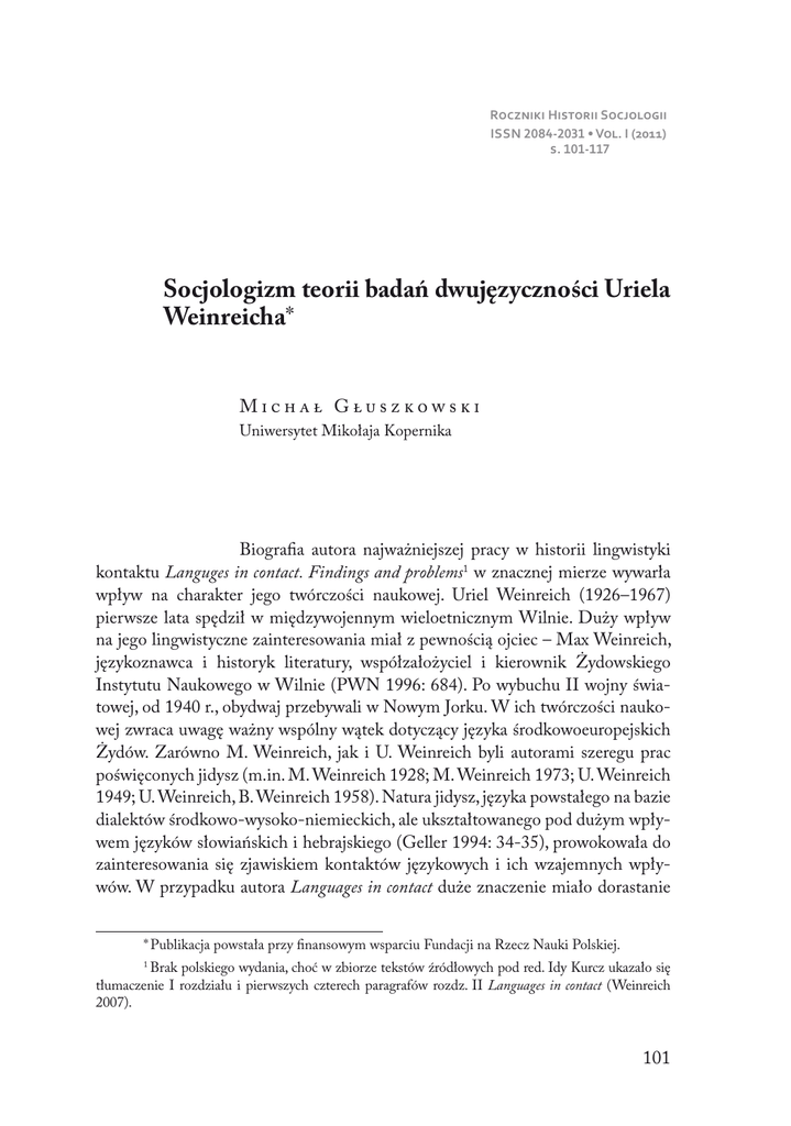 Socjologizm teorii badań dwujęzyczności Uriela Weinreicha