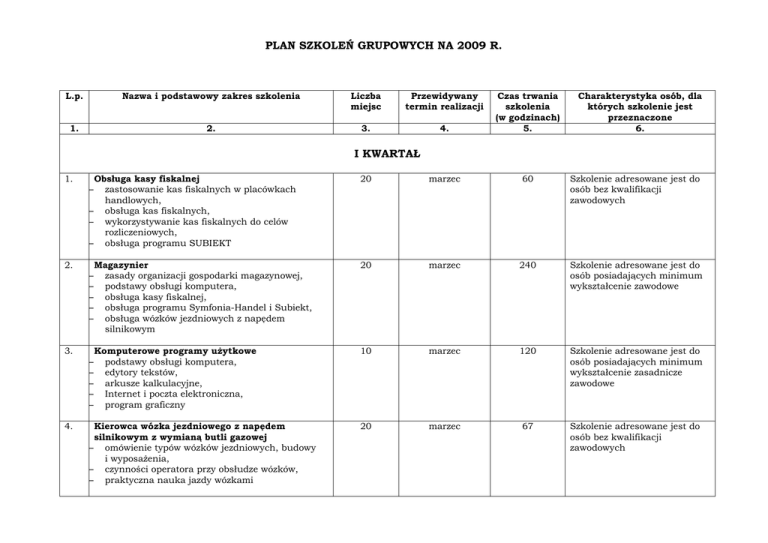 Plan szkoleń 2009 97 kB