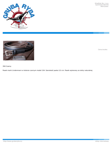 KingSize Sp. z o.o. Dymińska 6A/101 Warszawa Cena brutto: 350 Czarny Pasek marki Lindenmann w kolorze czarnym model 154. Szerokość paska 3,5 cm. Pasek wykonany ze skóry naturalnej. http://www.grubaryba.eu sklep internetowy