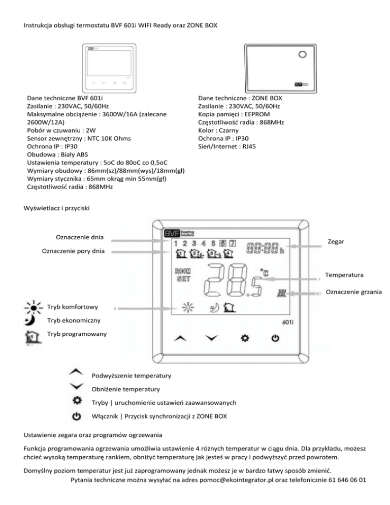 Instrukcja obsługi termostatu BVF 601i WIFI Ready oraz ZONE BOX