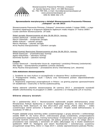 Sprawozdanie merytoryczne - Stowarzyszenie Pracownia Filmowa