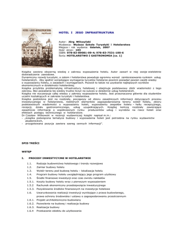 hotel i jego infrastruktura - Wyższa Szkoła Turystyki i Hotelarstwa w
