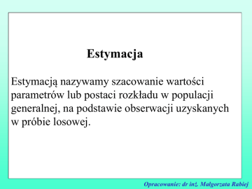 Estymacją nazywamy szacowanie wartości