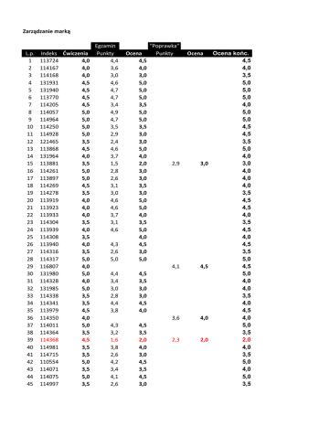 Zarządzanie marką Egzamin "Poprawka" L.p. Indeks Ćwiczenia