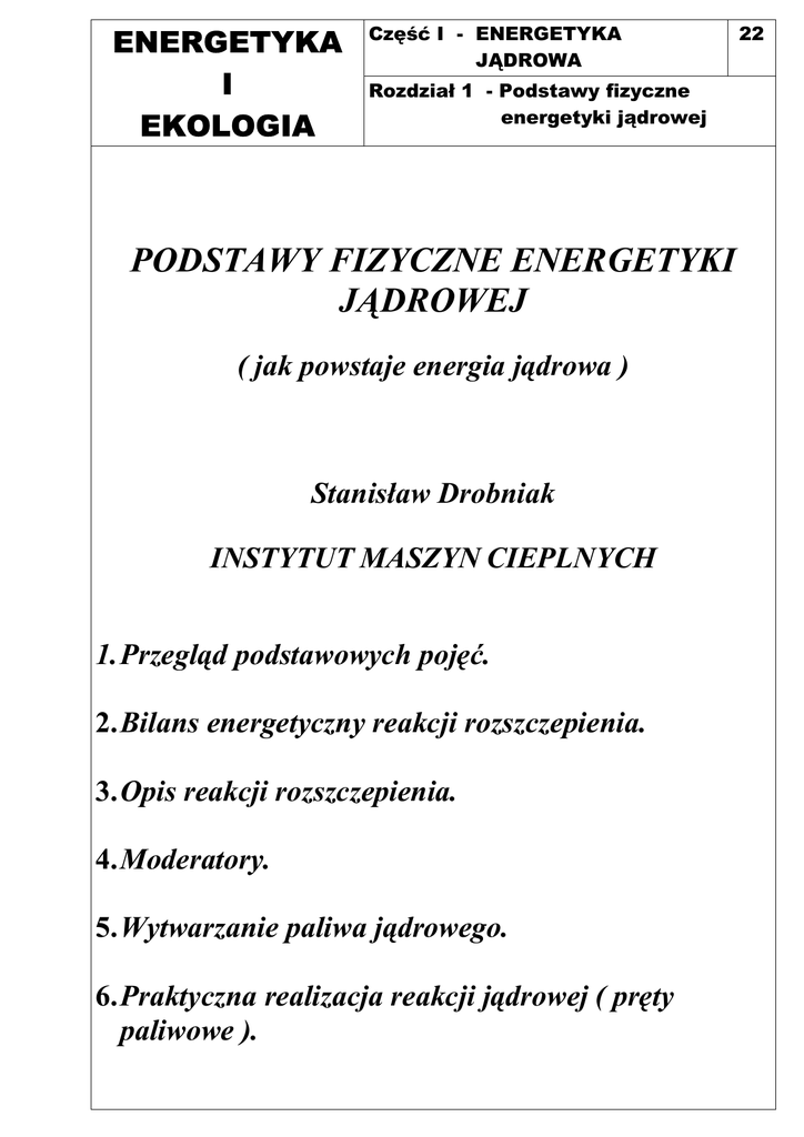 PODSTAWY FIZYCZNE ENERGETYKI JĄDROWEJ