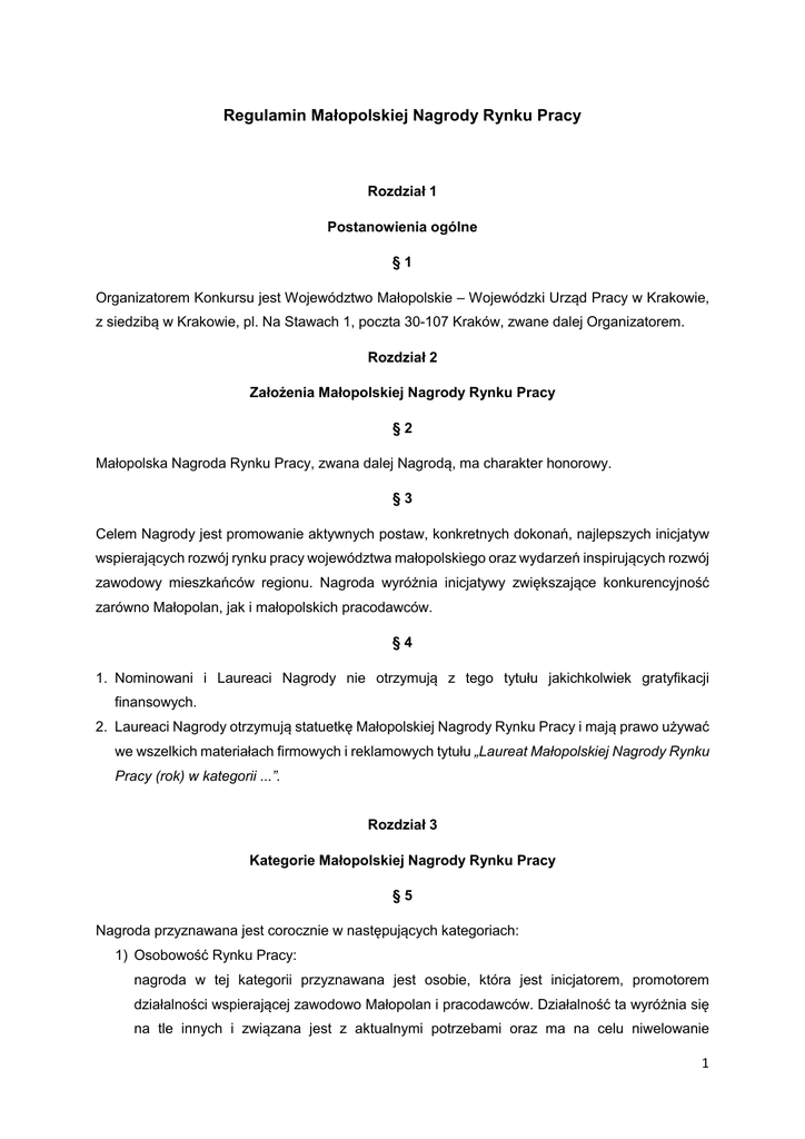 Regulamin konkursu: Małopolska Nagroda Rynku Pracy
