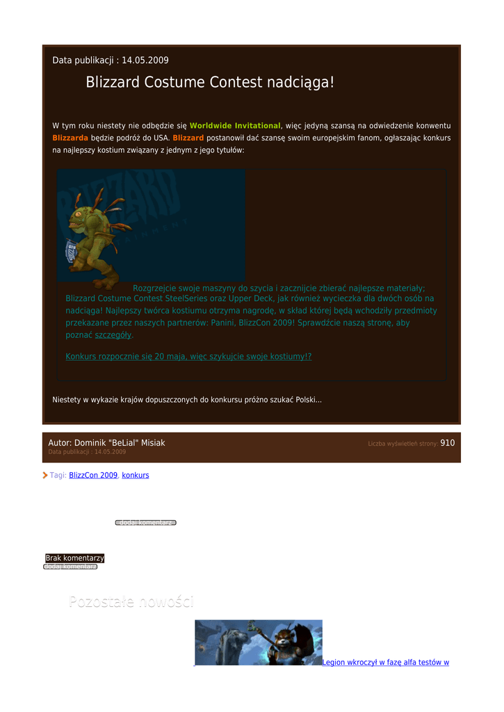Blizzard Costume Contest nadciąga! Pozostałe nowości