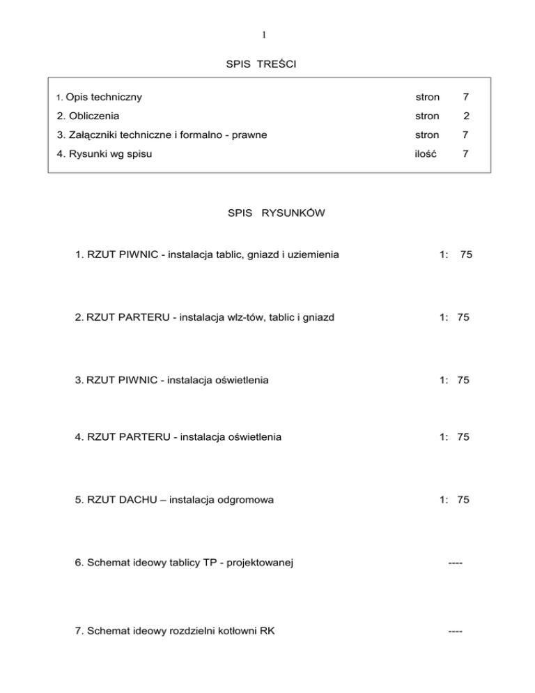 1 SPIS TREŚCI 1. Opis techniczny stron 7 2. Obliczenia stron 2 3
