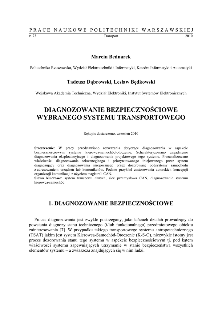 Słowa kluczowe: system transportu danych, sieć przemysłowa CAN, diagnozowanie systemu