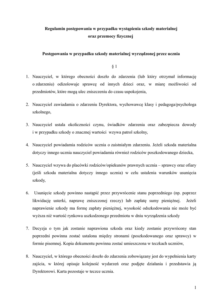 Regulamin postępowania w przypadku wystąpienia szkody
