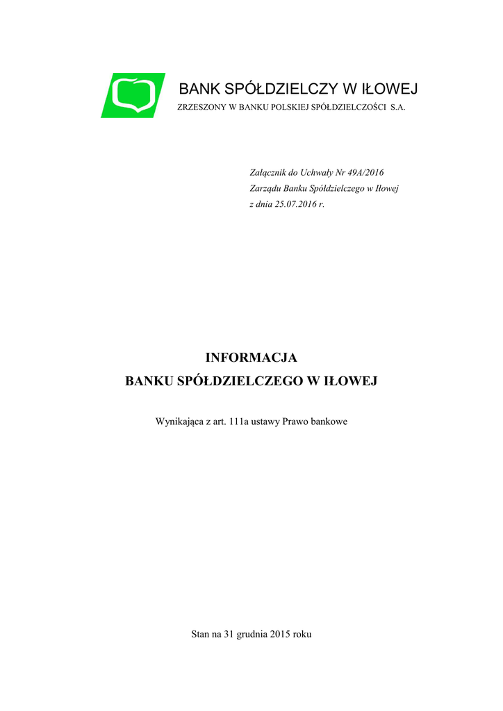 Informacja Banku art.111a - Bank Spółdzielczy w Iłowej