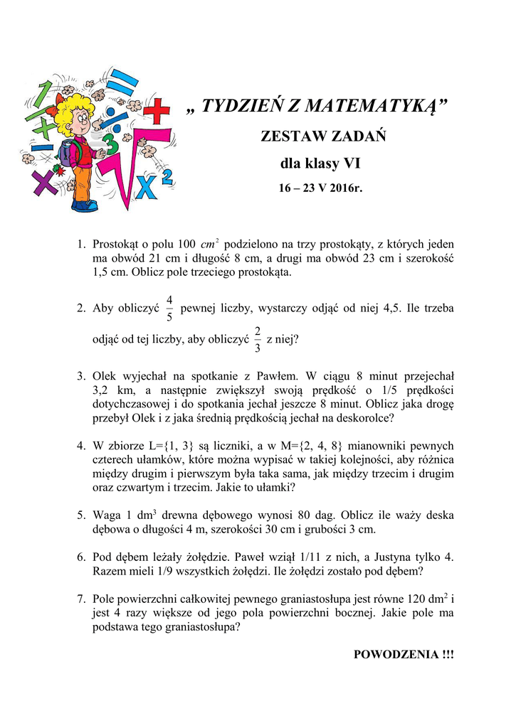 zestaw zadań dla klasy VI