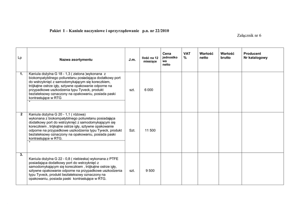 Pakiet I – Kaniule naczyniowe i oprzyrządowanie - bip
