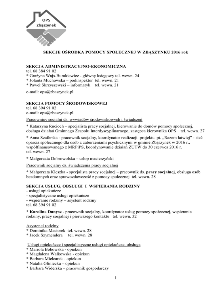 1 SEKCJE OŚRODKA POMOCY SPOŁECZNEJ W