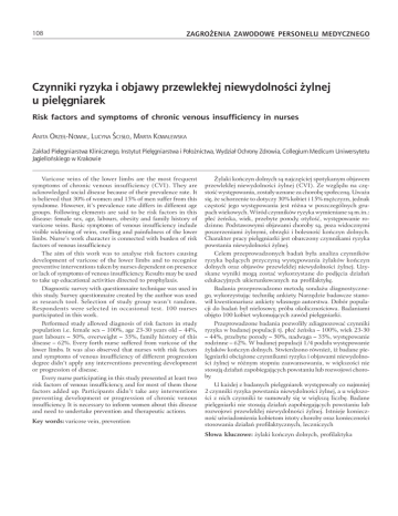 Czynniki ryzyka i objawy przewlek³ej niewydolności ¿ylnej u