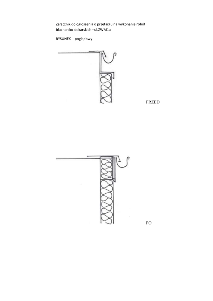 Załącznik do ogłoszenia o przetargu na wykonanie robót blacharsko-dekarskich –ul.ZWM1a RYSUNEK poglądowy PRZED PO