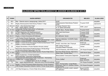 kalendarz imprez żeglarskich na jeziorze solińskim w 2013 r.