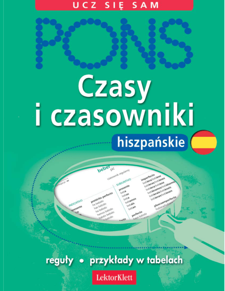 Niniejsza darmowa publikacja zawiera jedynie fragment pełnej wersji całej publikacji. Aby przeczytać ten tytuł w pełnej wersji kliknij tutaj. Niniejsza publikacja może być kopiowana, oraz dowolnie rozprowadzana tylko i wyłącznie w formie dostarczonej przez NetPress Digital Sp. z o.o., operatora sklepu na którym można nabyć niniejszy tytuł w pełnej wersji. Zabronione są jakiekolwiek zmiany w zawartości publikacji bez pisemnej zgody NetPress oraz wydawcy niniejszej publikacji. Zabrania się jej od-sprzedaży, zgodnie z regulaminem serwisu. Pełna wersja niniejszej publikacji jest do nabycia w sklepie internetowym Audio Fan. Czasy i czasowniki hiszpaƒskie Carlos Segoviano Wydawnictwo LektorKlett Poznaƒ 2001 Wydawnictwo LektorKlett ul. Rac∏awicka 72 60-302 Poznaƒ tel./faks (061) 861 88 28 Tytu∏ orygina∏u: Verbtabellen Spanisch Projekt ok∏adki: Erwin Poell, Ilona Arfaoui, Marian Winiecki © Ernst Klett Verlag GmbH, Stuttgart 1998 © dla wydania polskiego Wydawnictwo LektorKlett, Poznaƒ 2001 ISBN 83-88507-47-8 T∏umaczenie i adaptacja: Alina Rozynek Redakcja serii: Robert Kuc Redakcja tomu: Daria Miedziejko, Monika Jaskólska Sk∏ad: studio KO – Jerzy Nawrot Druk: ABEDIK, Poznaƒ Wydanie I Spis treÊci W tej ksià˝ce znajdziesz . . . . . . . . . . . . . . . . . . . . . . . . . . . . . . 4 Przeglàd terminów gramatycznych . . . . . . . . . . . . . . . . . . . . . . . . . 6 Co warto wiedzieç o odmianie czasowników hiszpaƒskich . . . . . . . . . . . . . 7 Kilka s∏ów o ró˝nicach w odmianach j´zyka hiszpaƒskiego . . . . . . . . . . . . . 9 Tabele koniugacyjne . . . . . . . . . . . . . . . . . . . . . . . . . . . . . . . . 10 Czasownik posi∏kowy haber – mieç . . . . . . . . . . . . . . . . . . . . . . . 10 Czasownik posi∏kowy ser – byç . . . . . . . . . . . . . . . . . . . . . . . . . 11 Czasownik posi∏kowy estar – byç, znajdowaç si´ . . . . . . . . . . . . . . . . 12 Regularne czasowniki modelowe . . . . . . . . . . . . . . . . . . . . . . . . 13 1. koniugacja: -ar (amar – kochaç) . . . . . . . . . . . . . . . . . . . . . 13 2. koniugacja: -er (beber – piç) . . . . . . . . . . . . . . . . . . . . . . . 14 3. koniugacja: -ir (vivir – ˝yç) . . . . . . . . . . . . . . . . . . . . . . . . 15 Zwrotny czasownik modelowy (lavarse – myç si´). . . . . . . . . . . . . . . . 16 Strona bierna (ser amado – byç kochanym) . . . . . . . . . . . . . . . . . . . 17 66 nieregularnych czasowników w porzàdku alfabetycznym . . . . . . . . . . 18 Rekcja najcz´Êciej u˝ywanych czasowników . . . . . . . . . . . . . . . . . . . . 84 Lista czasowników nieregularnych . . . . . . . . . . . . . . . . . . . . . . . . . 88 W tej ksià˝ce znajdziesz regu∏y dotyczàce • pisowni i wymowy czasowników hiszpaƒskich • stosowania czasów hiszpaƒskich tabele prezentujàce • formy czasowników hiszpaƒskich we wszystkich czasach • nieregularnoÊci zwiàzane z odmianà czasowników hiszpaƒskich. „Czasy i czasowniki hiszpaƒskie” zawierajà przejrzyste tabele koniugacyjne 72 regularnych i nieregularnych czasowników wzorcowych, jednego czasownika zwrotnego i strony biernej. Wzory odmian pozwolà Ci bez trudu zorientowaç si´ we wszystkich formach – tak˝e z∏o˝onych; dla u∏atwienia osobliwoÊci koniugacyjne zaznaczono kolorem i wyt∏umaczono je za pomocà praktycznych regu∏. Budowa tabel koniugacyjnych 1 3 5 beber 2. koniugacja: -er 2 beber piç 4 czasownik regularny SUBJUNTIVO 5 pretérito perfecto he bebido has bebido ha bebido hemos bebido habéis bebido han bebido presente beba bebas beba bebamos bebáis beban imperfecto bebía bebías bebía bebíamos bebíais bebían pluscuamperfecto había bebido habías bebido había bebido habíamos bebido habíais bebido habían bebido perfecto pluscuamperfecto haya bebido hubiera/hubiese bebido -u- → -ue-/-g- → -gu- (przed -e; patrz tak˝e str. 8) hayas bebido hubieras/hubieses bebido haya bebido hubiera/hubiese bebido SUBJUNTIVO hayamos bebidoINDICATIVO hubiéramos/hubiésemos bebido hayáis bebido presente hubierais/hubieseis bebido pretérito perfecto presente imperfecto hayan bebido juegohubieran/hubiesen bebido he jugado juegue jugara/jugase indefinido bebí bebiste bebió bebimos bebisteis bebieron pretérito anterior hube bebido hubiste bebido hubo bebido hubimos bebido hubisteis bebido hubieron bebido futuro imp. beberé beberás beberá beberemos beberéis beberán futuro perfecto habré bebido habrás bebido habrá bebido habremos bebido habréis bebido habrán bebido condicional bebería beberías bebería beberíamos beberíais beberían condicional comp. habría bebido habrías bebido habría bebido habríamos bebido habríais bebido habrían bebido 2 3 38 1. koniugacja: -ar jugar graç, bawiç si´ 7 14 4 imperfecto bebiera/bebiese bebieras/bebieses bebiera/bebiese bebiéramos/bebiésemos bebierais/bebieseis bebieran/bebiesen 1 presente bebo bebes bebe bebemos bebéis beben jugar INDICATIVO juegas has jugado juega ha jugado jugamos hemos jugado afirmativo negativo jugáis habéis jugado (tú) bebe no bebas juegan han jugado (usted) beba no beba (nosotros) bebamos no bebamos imperfecto pluscuamperfecto (vosotros) bebed no bebáis jugaba había jugado (ustedes) beban no beban jugabas habías jugado IMPERATIVO INFINITIVO simple beber GERUNDIO simple bebiendo PARTICIPIO bebido jugaba había jugado jugábamos habíamos jugado jugabais habíais jugado compuesto habían jugado jugaban haber bebido indefinido pretérito anterior jugué hube jugado jugaste hubiste jugado compuesto jugó hubo jugado habiendo bebido jugamos hubimos jugado jugasteis hubisteis jugado jugaron hubieron jugado futuro imp. jugaré jugarás jugará jugaremos jugaréis jugarán futuro perfecto habré jugado habrás jugado habrá jugado habremos jugado habréis jugado habrán jugado condicional jugaría jugarías jugaría jugaríamos jugaríais jugarían condicional comp. habría jugado habrías jugado ha