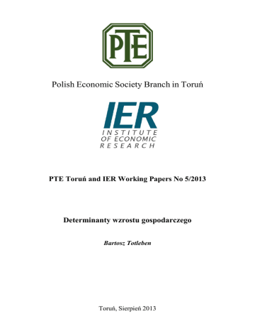 Polish Economic Society Branch in Toruń PTE Toruń and IER Working Papers No 5/2013 Determinanty wzrostu gospodarczego Bartosz Totleben Toruń, Sierpień 2013 Bartosz Totleben Uniwersytet Ekonomiczny w Poznaniu [email protected] DETERMINANTY WZROSTU GOSPODARCZEGO Słowa kluczowe: wzrost gospodarczy, badania panelowe, determinanty wzrostu gospodarczego Abstrakt: W artykule zbadano jaki wpływ na wzrost gospodarczy mają zmiany różnych wskaźników makroekonomicznych, w tym w szczególności kapitału ludzkiego, wydatków rządowych, innowacyjności oraz stabilności politycznej i społecznej. Analizowano grupę 102 krajów w latach 1960-2010 z użyciem 12 różnych wskaźników gospodarczych, politycznych i społecznych. Wykorzystano metody badań panelowych: uogólnioną metodę momentów (GMM) oraz metodę z efektem stałym (fixed effect). Uzyskane wyniki wskazują pozytywny wpływ innowacyjności, inwestycji zagranicznych oraz edukacji na tempo wzrostu gospodarczego. Negatywnie powiązane są natomiast bezrobocie, inflacja oraz wydatki rządowe. DETERMINANTS OF ECONOMIC GROWTH Keywords: economic growth, panel research, determinants of economic growth Abstract: The article is examines the impact of macroeconomic indicators, in particular: human capital, government spending, innovation, political and social stability, on economic growth. In total 12 different indicators describing the economical, political and social conditions are taken into account. The study considers 102 countries between years 1960 and 2012 and two methods of estimation are performed: generalized method of moments (GMM) and fixed effects (FE). The results show the positive impact of innovation, foreign investment and education on economic growth. Unemployment, inflation and government spending are negatively associated with economic growth. WPROWADZENIE Zagadnienia wzrostu gospodarczego są przedmiotem ciągłych badań ekonomistów. Jednak z uwagi na dostępność coraz dłuższych szeregów czasowych analizy te powinny być poddawana ciągłej aktualizacji. W niniejszej Determinanty wzrostu gospodarczego pracy zostaną zaprezentowane podstawowe pojęcia dotyczące wzrostu gospodarczego, przegląd literatury oraz uzyskany model ekonometryczny i wnioski. Estymacja kilku modeli różniących się przyjętą metodą badawczą oraz zmiennymi pozwala na wyciąganie możliwie najobszerniejszych wniosków z zebranych danych. WZROST GOSPODARCZY – PODSTAWOWE POJĘCIA Wzrost gospodarczy należy traktować jako zjawisko powiększania się wybranej wartości, będącej miernikiem wzrostu. W artykule przyjęta została definicja Woźniaka traktująca gospodarkę jako „kategorię materialną, technologiczną, polityczną, prawno-organizacyjną i społecznocywilizacyjną”, która składa się ze strefy realnej oraz sfery regulacji, obejmującej szeroką skalę zjawisk i procesów związanych z działalnością gospodarczą. Wzrost gospodarki odnosi się do sfery realnej i obejmuje materialną bazę produkcji, zasoby naturalne, ludność oraz wytwarzane dobra produkcyjne i konsumpcyjne. Wzrostem gospodarczym nazywamy zmiany polegające na zwiększaniu się całej gospodarki (wyrażone w wybranym mierniku), wynikające ze zmian jej elementów składowych (Woźniak, s. 9-11). Z przytoczonej definicji wynika, iż wzrost gospodarczy jest związany z dynamiką poszczególnych składników gospodarki oraz nie wyklucza regresu w pewnych sektorach, jeżeli łączny efekt procesu gospodarczego w przyjętym okresie będzie dodatni 1. Gdy wzrostowi gospodarczemu, a więc zmianom ilościowym, towarzyszą pozytywne zmiany jakościowe struktury ekonomiczno-społecznej, używa się terminu rozwój gospodarczy. Ze względu na mnogość aspektów, które są powiązane ze wzrostem gospodarczym, należy wyróżnić jego typy: − wzrost ekstensywny i intensywny, − wzrost zrównoważony i niezrównoważony, − wzrost ustabilizowany i nieustabilizowany. Wzrost ekstensywny bazuje na zmianach czynników wytwórczych w ramach istniejącej wiedzy technologicznej. Zwiększenie ogólnej produkcji i produktywności dokonuje się poprzez wzrost nakładów kapitałowych na pracownika w sektorach o niskim poziomie produktywności lub realokację zasobów, w tym pracy, w kierunku sektorów bardziej produktywnych (zmiany strukturalne). 1 Efekt procesu gospodarczego jest dodatni, jeżeli na koniec okresu suma wartości wytworzonych dóbr i usług jest większa od stanu obserwowanego na początku okresu. 4 Bartosz Totleben Wzrost intensywny jest wzrostem produktywności indukowanym poprzez innowacje. Co oczywiste, wzrost intensywny bardzo rzadko występuje bez wzrostu ekstensywnego, ponieważ adaptacja nowych technologii i wiedzy jest skorelowana z inwestycjami w czynniki produkcji (ang. capital-embodied technological change) (Frankema, van Waijenburg, s. 5). Jedynie wzrost intensywny przynosi stałe, pozytywne czynniki w długim okresie i może być determinantą nowoczesnego wzrostu gospodarczego (ang. modern economic growth) (Kuznets, 1971). Wzrost zrównoważony charakteryzuje się, w zależności od przyjętej definicji, zwiększaniem miernika wzrostu gospodarczego, gdy gospodarka jest w stanie równowagi, oscyluje wokół tego stanu lub znajduje się na ścieżce zrównoważonego wzrostu 2. Za stan równowagi mogą być przyjęte: − wszechstronny rozwój gospodarczy, tj. jednoznaczny rozwój przemysłu, usług, rolnictwa, infrastruktury społecznej i komunalnej, zasobów mieszkaniowych, kultury, sieci telefonicznych i telewizyjnych oraz turystyki (Siedlecki, 2000, s. 95), − walrasowska koncepcja równowagi statycznej, tj. zrównywanie ceny popytu i ceny podaży (Woźniak, 2008, s. 32), − równowaga ogólna, tj. stan gospodarki wymiennej, w którym wszystkie gałęzie są zrównoważone wewnętrznie w każdej chwili oraz znajdują się w równowadze między sobą (Danowska-Prokop, Przybyła, ZagóraJonszta, 2009, s. 64). Cechami charakteryst