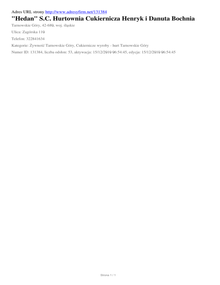 "Hedan" SC Hurtownia Cukiernicza Henryk i Danuta