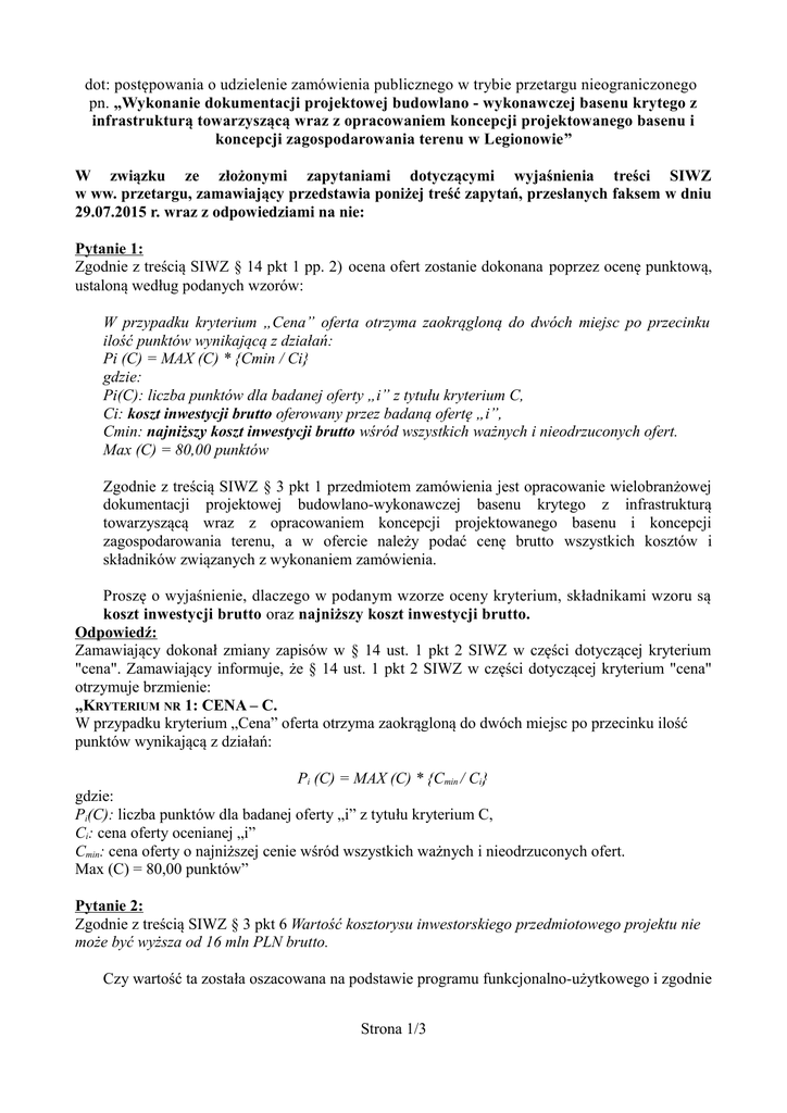 29.07.2015 r. wraz z odpowiedziami na nie:
