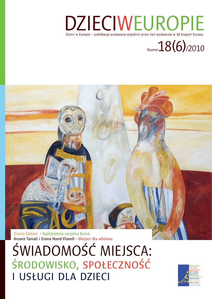 DZIECIWEUROPIE Dzieci w Europie – publikacja wydawana wspólnie przez sieć wydawców w 18 krajach Europy. 18(6)/2010 Numer Grazia Faltoni - Spółdzielnia socjalna Koiné Aroaro Tamati i Erana Hond-Flavell - Miejsce dla whānau Świadomość miejsca: środowisko, społeczność i usługi dla dzieci Zespół Redakcyjny Irene Balaguer, „Infancia” , Hiszpania Associació de Mestres Rosa Sensat wydaje dwa magazyny; „Infància” i „Infancia” po katalońsku, oraz hiszpańsku sześć razy w roku. Oba zajmują się dziećmi w wieku 0-6 lat oraz łączą teorię z praktyką. www.revistainfancia.org Browen Cohen, „Children in Scotland” , Wielka Brytania i Irlandia „Children in Scotland” to miesięcznik, który oferuje pogłębione artykuły i aktualności dotyczące dzieci, młodych ludzi i ich rodzin w Szkocji. www.childreninscotland.org.uk Ferruccio Cremaschi, „Bambini” , Włochy „Bambini” to miesięcznik dla pedagogów zajmujących sie dziecmi w wieku 0-6 lat, który koncentruje się na naukowych badaniach oraz dobrych praktykach w działaniach edukacyjnych. Eva Gruber, „Betrifft Kinder” , Niemcy „Betrifft Kinder” to miesięcznik zawierający aktualności i informacje o polityce dotyczącej opieki i edukacji małych dzieci w Niemczech. www.verlagdasnetz.de Perrine Humblet, „Grandir à Bruxelles” , społeczność francuska, Belgia Cztery tysiące egzemplarzy pisma „Grandir à Bruxelles”, są nieodpłatnie dystrybuowane co dziewięć miesięcy. www.grandirabruxelles.be Teresa Ogrodzińska, Fundacja im J. A. Komeńskiego, Polska Fundacja Komeńskiego to organizacja pozarządowa dążąca do zapewnienia równych szans wszystkim dzieciom w wieku od urodzenia od 10 lat. www.frd.org.pl Stig G Lund, „Born & Unge” , Dania „Born & Unge” to tygodnik nieodpłatnie dystrybuowany do 50 tysięcy członków BUPL (związku zawodowego pedagogów). Zajmuje się praktyką, teorią oraz warunkami ich pracy. www.bupl.dk, www.boernogunge.dk Jan Peeters, Anke van Keulen, „Kiddo” , Flandria i Holandia „Kiddo” wychodzi osiem razy w roku i jest rozpowszechniane w Holandii oraz Flandrii. Skierowany jest do praktyków pracujących z dziećmi w wieku 0 - 12 lat. www.childcareinternational.nl, www.vbjk.be Marie Nicole Rubio, „Le Furet” , Francja „Le Furet” wydawany jest trzy razy w roku, zajmuje się dziećmi w wieku 0-6 lat. Jest czytany przez trenerów, menedżerów i koordynatorów we Francji. www.lefuret.orgl Alexandra Marques, „Cadernos de Educação de Infância” , Portugalia APEI – Associação de Profissionais de Educação de Infância wydaje „Cadernos de Educação de Infância” trzy razy w roku. To jedyny w Portugalii magazyn poświęcony problematyce małych dzieci. www.apei.no.sapo.pt Helena Ingvarsdotter, „Tidningen Förskolan” , Szwecja „Tidningen Förskolan” wydawany jest 10 razy w roku. To magazyn skierowany do szwedzkich związków zawodowych nauczycieli. www.forskolan.net Gella Varnava-Skoura, „Mosty”, Grecja Magazyn Mosty wydawany jest sześć razy w roku. Skierowany jest do nauczycieli, nauczycieli akademickich i praktyków pracujących z dziećmi. Poświęcony jest tematyce teorii, badań i dobrym praktykom w edukacji dla dzieci w wieku 3-12 lat www.doudoumis.gr Nowy członek redakcji: Helena Buric, „Pučko otvoreno učliliąte” , Korak po korak, Chorwacja Helena Buric, Pučko otvoreno učliliąte, Korak po korak (Otwarta Akademia Krok po kroku) to organizacja pozarządowa szkoląca nauczycieli. Jej misją jest promocja jakościowej edukacji i opieku dla dzieci. www.korakpokorak.hr DZIECIWEUROPIE Celem „Dzieci w Europie” jest: - stworzenie forum do wymiany myśli, doświadczeń i informacji, - nawiązanie dialogu między teorią a praktyką, - podkreślanie szacunku dla różnorodności, - wkład w rozwój polityki i praktyki na poziomie państwowym i europejskim, - włączanie osiągnięć z przeszłości we współczesne rozwiązania. Numer został wydany dzięki dofinansowaniu Trust for Civil Society in Central & Eastern Europe Spis treści Od redakcji Witamy na łamach 18 numeru Dzieci w Europie, w którym rozważamy znaczenie „miejsca” i społeczności oraz ich związku z usługami dla małych dzieci, z perspektywy miasta, obszarów podmiejskich oraz wsi. Specjalne miejsce poświęcamy wsi i jej możliwościom rozwojowym. Redaktorem prowadzącym tego wydania jest Bronwen Cohen, prezeska Children in Scotland, wydawcy anglojęzycznej wersji magazynu Dzieci w Europie. Do obszaru jej zawodowych zainteresowań od dawna należą relacje między usługami a społecznościami lokalnymi, zwłaszcza w zakresie rozwoju i wykorzystywania najbliższego otoczenia do wspomagania procesu uczenia się. W poprzednim numerze Dzieci w Europie przyglądaliśmy się zmianom, które zaszły w obszarze praw dziecka. Od tamtej pory został podpisany nowy Traktat Unii Europejskiej, który ma wspierać rozpowszechnianie praw dziecka, w tym także usług dla małych dzieci. Podczas corocznej konferencji Eurochild 2009, urzędnicy z Hiszpanii i Belgii, krajów sprawujących prezydencję w 2010 roku, zadeklarowali, że będą wspólnie pracować nad rozwijaniem unijnych Rekomendacji dotyczących dobrostanu dzieci. Aktualności na ten temat zamieszczane są na stronie www.eurochild.org. Temat Numeru 2 Oddziaływanie miejsca 4 5 6 Malowanie życia – czyli o tym, jak życie w społeczności rybackiej ukształtowało artystę – rozmowa z malarzem Johnem Bellony Rita Haberkorn - Urodzeni na wolności? O dorastaniu w świecie współczesnym Marzena Łotys – Dorastanie na wsi Edukacja regionalna 9 12 Karl Jan Solstad, Anne Sofie Skogvold, Wenche Rønning Edukacja regionalna w Norwegii Will Coleman - Do czego służy szkoła? Miejsce, kultura, tożsamość 14 15 17 18 Aroaro Tamati i Erana Hond-Flavell - Miejsce dla whānau Chris Pascal i Tony Bertram - Otwarcie okien na inny świat Clare Meade i Karen Fairfax-Cholmeley Edukacj