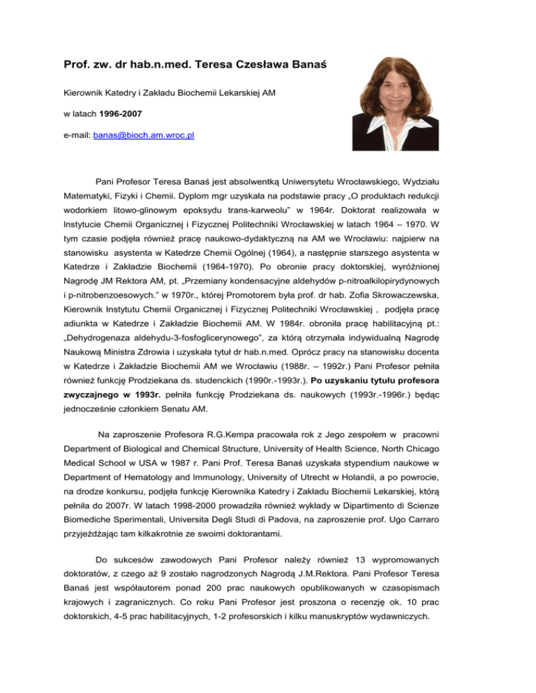 Prof. zw. dr hab.n.med. Teresa Czesława Banaś