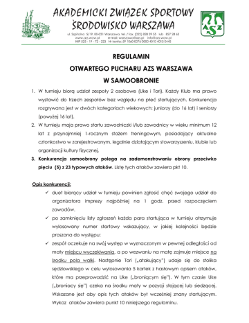 REGULAMIN OTWARTEGO PUCHARU AZS WARSZAWA W