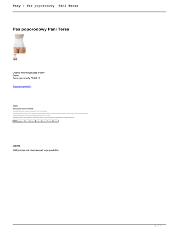 Pasy : Pas poporodowy Pani Tersa Pas poporodowy Pani Tersa Ocena: Nie ma jeszcze oceny Cena Cena sprzeda?y 55,00 z? Zapytaj o produkt Opis WSKAZANIA / ZASTOSOWANIE: po porodach fizjologicznych – wzmacnia nadmiernie rozci?gni?te pow?oki brzuszne po porodach operacyjnych (cesarskie ci?cie) – zabezpiecza przed wyst?pieniem przepukliny pooperacyjnej, daje poczucie pewno?ci i bezpiecze?stwa, ?agodzi bóle rany pooperacyjnej u?atwia wczesne wykonywanie ?wicze? gimnastycznych wzmacniaj?cych mi??nie brzucha Systematyczne noszenie pasa i wykonywanie odpowiedniego zestawu ?wicze? gimnastycznych przyspiesza powrót do sylwetki sprzed ci??y. ROZMIAR Obwód brzucha [cm] XS < 80 S 80 – 90 M 91 – 100 L 101 – 110 XL 111 – 120 XXL 121 – 140 Opinie Nikt jeszcze nie recenzowa? tego produktu. 1 / 1 Powered by TCPDF (www.tcpdf.org)