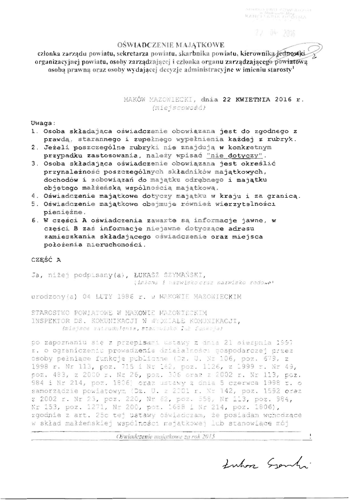 Oświ adcz eni e ma j ątko we
