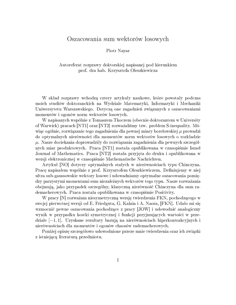 [C] Czerwi«ski, W., Khinchine inequalities (in Polish), University of Warsaw, Master