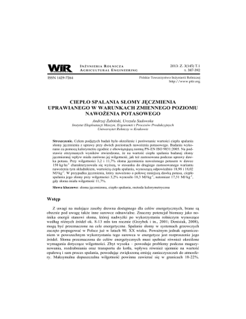 ciepło spalania słomy jęczmienia uprawianego w warunkach