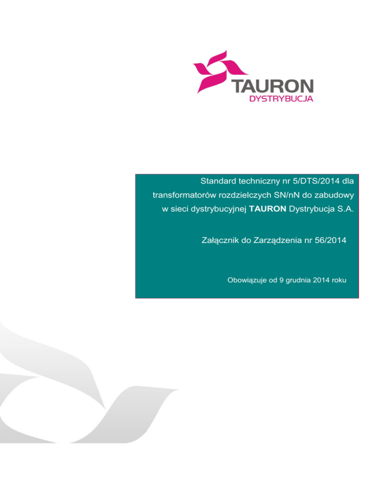 Standard techniczny 5/DTS/2014 transformatorów rozdzielczych SN