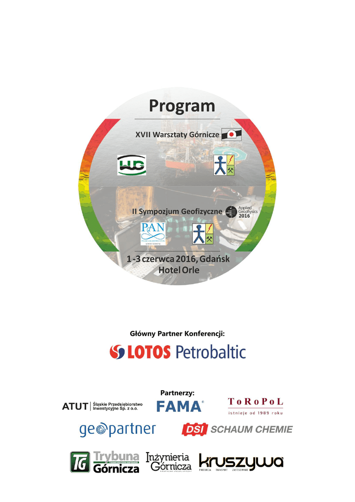 Główny Partner Konferencji: Partnerzy: PROGRAM RAMOWY I dzień - środa (1 czerwca 2016) 10:00 – 14:00 Rejestracja Uczestników (hall Hotelu Orle) 12:00 – 14:00 Obiad 14:00 – 14:40 Uroczyste otwarcie konferencji 14:40 – 15:10 Wykład specjalny 15:10 – 16:30 Sesja plenarna 16:30 – 16:50 Przerwa – kawa, herbata 16:50 – 18:10 Sesja plenarna 18:15 Pamiątkowa fotografia Uczestników Konferencji 18:30 Spotkanie towarzyskie II dzień – czwartek (2 czerwca 2016) 08:30 – 12:45 Sesje tematyczne XVII Warsztaty Górnicze. Górnictwo: człowiek-środowisko-zrównoważony rozwój (sala C) Applied Geophysics. Geofizyka stosowana w zagadnieniach górniczych, inżynierskich i środowiskowych (sala D) 13:00 – 14:30 Obiad 14:30 – 15:45 Sesje specjalne SEISMOBILE - sejsmiczny system do badań podłoża szlaków komunikacyjnych (sala D) MINFORMATICS’ 2016 – symulacje numeryczne i cyfrowe w problematyce górniczej i ochrony środowiska na terenach górniczych i pogórniczych (sala C) 18:30 Spotkanie przy grillu oraz wręczenie wyróżnień w konkursach III dzień – piątek (3 czerwca 2016) 09:00 – 12:00 Wyjazd terenowy – zwiedzanie Rafinerii Grupy LOTOS S.A. w Gdańsku 12:00 – 13:00 Lunch 13:00 – 14:30 Zwiedzanie Europejskiego Centrum Solidarności w Gdańsku 15:00 Powrót do Hotelu Orle 2 PROGRAM SZCZEGÓŁOWY I dzień - środa – 1 czerwca 2016 SESJA PLENARNA (SALA C) Prowadzący: dr hab. inż. Zenon PILECKI prof. IGSMiE PAN (Czas wygłoszenia referatu 25 min + 5 min dyskusja) Wykład specjalny (sala C) Godz. 14:40 – 15:10 Autor (Instytucja), tytuł referatu, wykładu Mgr inż. Sławomir SOCHACKI (LOTOS Petrobaltic S.A.): Działalność i rozwój firmy LOTOS Petrobaltic S.A. Prowadzący: prof. dr hab. inż. Kaja PIETSCH, dr inż. Ireneusz GRZYBEK (Czas wygłoszenia referatu 15 min + 5 min dyskusja) Godz. 15:10 - 15:30 15:30 - 15:50 15:50 - 16:10 16:10 - 16:30 16:30 - 16:50 Autor (Instytucja), tytuł referatu, wykładu Prof. dr hab. inż. Krystyna KUŹNIAR*, prof. dr hab. inż. Tadeusz TATARA** (*Uniwersytet *Pedagogiczny w Krakowie, **Politechnika Krakowska): Drgania pochodzenia górniczego gruntu i fundamentu budynku w ocenie ich szkodliwości Mgr inż. Adrian WALTER (Wyższy Urząd Górniczy): Wybrane aspekty gospodarki wodno-ściekowej w górnictwie węgla kamiennego na tle roku 2014 Dr hab. inż. Zenon PILECKI prof. IGSMiE PAN*, mgr inż. Krzysztof PORĘBSKI**, mgr inż. Dariusz JACH**, mgr inż. Jerzy WRÓBEL**, mgr inż. Paweł PIASECKI**, mgr inż. Eugeniusz KOZIARZ** (*Instytut Gospodarki Surowcami Mineralnymi i Energią PAN, **KGHM Polska Miedź S.A. O/ZG Rudna): Rozpoznanie stref zagrożenia gazogeodynamicznego metodą tomografii sejsmicznej w warunkach ZG Rudna Mgr Tomasz HERBICH (Instytut Archeologii i Etnologii PAN): Metody geofizyczne w archeologicznych badaniach starożytnych miast w Egipcie Przerwa – kawa, herbata Prowadzący: prof. dr hab. inż. Kaja PIETSCH, dr inż. Ireneusz GRZYBEK (Czas wygłoszenia referatu 15 min + 5 min dyskusja) Godz. 16:50 - 17:10 17:10 - 17:30 17:30 - 17:50 17:50 – 18:10 Autor (Instytucja), tytuł referatu, wykładu Prof. dr hab. inż. Henryk MARCAK (Instytut Geofizyki PAN): Interferometria sejsmiczna – zalety i ograniczenia Dr inż. Krzysztof TAJDUŚ, prof. dr hab. inż. Anton SROKA (Instytut Mechaniki Górotworu PAN): Prognozowanie deformacji powierzchni terenu i górotworu wywołanych podziemną eksploatacją ropy i gazu Dr hab. inż. Stanisław DUŻY prof. Pol. Śl. (Politechnika Śląska): Ocena stopnia bezpieczeństwa wyrobisk korytarzowych zlokalizowanych na terenach pogórniczych Dr inż. Wojciech SAS, mgr inż. Emil SOBÓL, dr inż. Katarzyna GABRYŚ, dr inż. Katarzyna MARKOWSKA-LECH (Szkoła Główna Gospodarstwa Wiejskiego): Study of the cohesive soil stiffness in modified resonant column 18:15 Pamiątkowa fotografia Uczestników Konferencji (przed budynkiem Hotelu) 18:30 Spotkanie towarzyskie przy grillu 3 II dzień – czwartek – 2 czerwca 2016 W YKŁADY I REFERATY SE SJI TEMATYCZNYCH XVII Warsztaty Górnicze Górnictwo: człowiek-środowisko-zrównoważony rozwój (sala C) Prowadzący: dr hab. inż. Józef KABIESZ prof. GIG, dr hab. inż. Lucyna FLORKOWSKA prof. IMG PAN (Czas wygłoszenia referatu 12 min + 3 min dyskusja) Godz. 8:30 - 8:45 8:45 - 9:00 9:00 - 9:15 9:15 - 9.30 9:30 – 9:45 9:45 – 10:00 10:00 – 10:15 10:15 – 10:30 10:30 – 11:00 Autor (Instytucja), Tytuł referatu Dr hab. inż. Lucyna FLORKOWSKA prof. IMG PAN, (Instytut Mechaniki Górotworu PAN): Zagadnienia szkód górniczych w kontekście Celów Zrównoważonego Rozwoju (SDGs) Dr inż. Izabela BRYT-NITARSKA (Instytut Mechaniki Górotworu PAN): Wartość obiektu budowlanego na terenie górniczym – analiza porównawcza Dr Paweł ZAGOŻDŻON (Politechnika Wrocławska): Dawne podziemne wyrobiska Dolnego Śląska, jako obiekty badań naukowych i atrakcje turystyczne Dr Agnieszka GONTASZEWSKA (Uniwersytet Zielonogórski): Rozpoznanie warunków geologiczno – inżynierskich na terenie dawnej, podziemnej eksploatacji węgla brunatnego dla celów zabudowy mieszkaniowej – przykład Zielonej Góry Dr Robert KACZMARCZYK*, mgr inż. Sylwia TCHÓRZEWSKA**, mgr inż. Jacek STANISZ*, dr inż. Aleksandra BORECKA* (*Akademia Górniczo-Hutnicza; **Podhalańska Państwowa Wyższa Szkoła Zawodowa w Nowym Targu): Wskaźniki zmian wytrzymałości na ścinanie w strefach zagrożenia osuwiskowego na obszarze kopalni węgla brunatnego „Turów” i „Bełchatów” Dr inż. Renata PATYŃSKA (Główny Instytut Górnictwa): Wskaźnik emisji metanu z metanowych kopalń węgla kamiennego w Polsce Mgr inż. Aleksander WARDAS*, mgr inż. Roland BOBEK**, mgr inż. Tomasz ŚLEDŹ**, mgr inż. Adam RATAJCZAK**, dr inż. Piotr GŁUCH*** (*JSW S.A., Jastrzębie – Zdrój; **JSW S.A. KWK „Knurów Szczygłowice”, Knurów; ***Politechnika Śląska) Sposób poprawy sztywności układu obudowa – górotwór w warunkach słabych skał karbońskich Mgr i