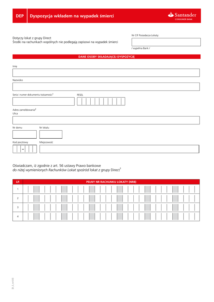 Dokonanie niniejszego zapisu odwołuje zapis wcześniej dokonany do wskazanych wyżej Rachunków Lokat.