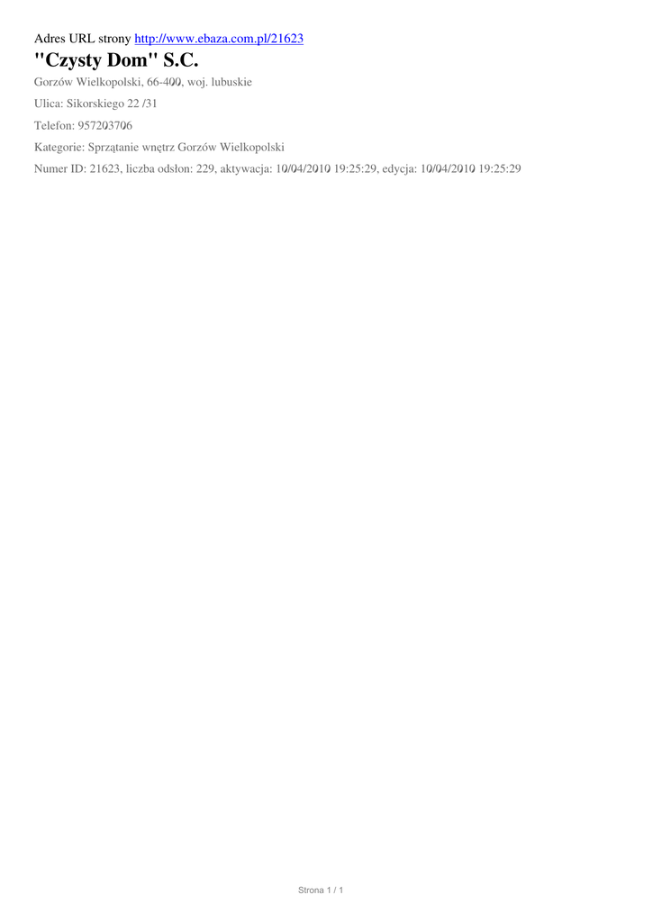 Adres URL strony http://www.ebaza.com.pl/21623 "Czysty Dom" S.C. Gorzów Wielkopolski, 66-400, woj. lubuskie Ulica: Sikorskiego 22 /31 Telefon: 957203706 Kategorie: Sprzątanie wnętrz Gorzów Wielkopolski Numer ID: 21623, liczba odsłon: 229, aktywacja: 10/04/2010 19:25:29, edycja: 10/04/2010 19:25:29 Strona 1 / 1