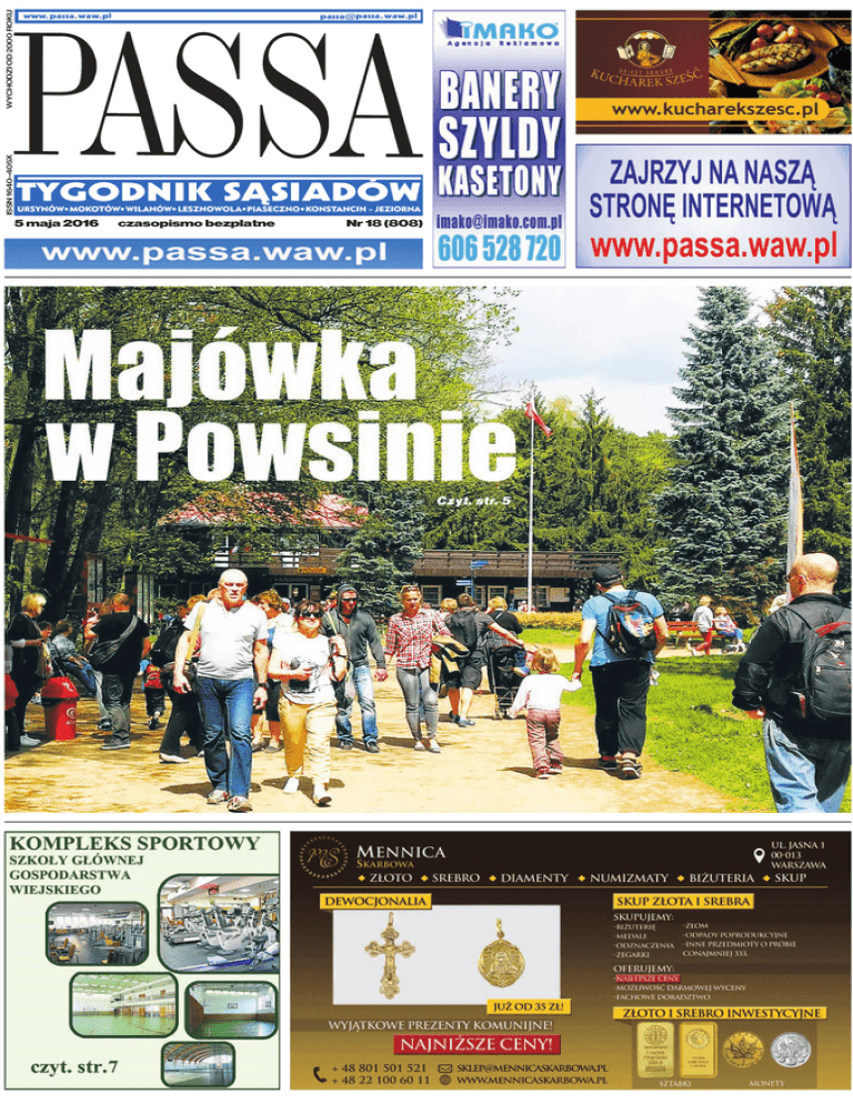 WYCHODZI OD 2000 ROKU ISSN 1640–405X 5 maja 2016 czasopismo bezpłatne Nr 18 (808) Czyt. str. 5 FOTO PIOTR PAJEWSKI 2 Panowie i panie, poddajcie się dobrej zmianie! z drugiej strony. Niektórzy ową niejasność chwalą, inni ganią, na razie jednak wypada szanować postanowienia dotychczasowej Konstytucji, kierując się starą prawdą ludową, że jak się nie ma, co się lubi, to trzeba lubić co się ma. arto po części chociaż przypomnieć, czym była Ustawa Rządowa z 3 maja 1791 roku. Jej preambuła zaczynała się od słów wypowiadanych przez monarchę: „W imię Boga w Trójcy Świętej Jedynego. Stanisław August z bożej łaski i woli narodu Król Polski, Wielkie Książę Litewski, Ruski, Pruski, Mazowiecki, Żmudzki, Kijowski, wołyński, Podolski, Podlaski, Inflancki, Smoleński, Siewierski i Czernichowski, wraz z Stanami Skonfederowanymi w liczbie podwójnej naród polski reprezentującymi.” W rozdziale pierwszym stwierdzono, że „religią panującą jest i będzie wiara święta katolicka ze wszystkimi jej prawami; przejście od wiary panującej do jakiegokolwiek wyznania jest zabronione pod karami apostazji/.../.” Gdyby więc Konstytucja 3. Maja obowiązywała jeszcze w czasach Józefa Piłsudskiego, byłby on ukarany jako przechrzta. W Rozdziale IV – zatytułowanym „Chłopi i włościanie” – przyznaje się, że „lud rolniczy najliczniejszą w narodzie stanowi ludność”, ale nie ma mowy o zniesieniu pańszczyzny, która zaczęła stopniowo znikać na ziemiach polskich dopiero w XIX wieku – aż wstyd powiedzieć – pod rządami zaborców:pruskiego, austriackiego i rosyjskiego. onstytucja z 1997 roku jest echem politycznego kompromisu pogrobowców świeckiej PRL i wspieranych przez Kościół przedstawicieli ugrupowań RYS. PETRO/AUGUST W T egoroczne majówki – niczym za PRL-u – odbywają się głównie w formie pochodów. Zamiast się rozsiąść wygodnie na trawie w celu spożywania darów bożych w plenerze, panowie i panie tańczą na ulicach chodzonego. I dopiero za pewien czas się okaże, kto i gdzie ma tak naprawdę największe chody. Peerelowska władza śpiewała o ruszaniu z posad bryły świata, obecna rusza z posad ludzi ancien régime’u. W związku z tym w mediach społecznościowych jedni cieszą się, słysząc jak kwiczą świnie odsuwane od koryta, inni zaś kwaczą o odnoszonych sukcesach. W 225. rocznicę uchwalenia Konstytucji 3. Maja można było znowu zakrzyknąć: wiwat król, wiwat Sejm, wiwat wszystkie stany! – pamiętając, że najbardziej odpowiada nam stan upojenia, a szczególne obrzydzenie mamy do stanu wojennego. trakcie trzydniowej politycznej majówki najbardziej prominentni dygnitarze nie tylko zachwalali Konstytucję 3. Maja, lecz również sygnalizowali potrzebę uchwalenia radykalnych zmian w obecnej ustawie zasadniczej, obowiązującej od 1997 roku. Stwarza ona dosyć częste nieporozumienia pomiędzy prezydentem – z jednej a premierem oraz poszczególnymi ministrami W K kłopotów, i kosztów, związanych z ewentualną wymianą dokumentów, wizytówek, pieczątek, a także uaktualnieniem nawigacji samochodowej. Z Józefem Feliksem Ciszewskim (1877-1937), swego czasu działaczem Komunistycznej Partii Polski i Komunistycznej Partii Związku Radzieckiego, pewnie się władze rozprawią bez większego problemu. Dużo silniejsza będzie obrona ulicy Związku Walki Młodych. Zwolennicy zachowania tej nazwy powołują się na zdecydowaną wolę większości osób zainteresowanych, a dodatkowo przypominają o niekwestionowanych zasługach zetwuemowców w walce z hitlerowskim okupantem. Protesty mieszkańców nie będą miały najprawdopodobniej większego znaczenia, bo i tak decydujący głos należy przecież do wojewody. awiasem mówiąc, wspomniana ulica Ciszewskiego jest pod każdym względem pechowa. Od dawna bowiem miało nastąpić jej przedłużenie do Miasteczka Wilanów, ale ktoś pozwolił częściowo zatarasować oś owego przedłużenia zabudowaniami Wzgórza Słowików. Byłoby rzeczą nadzwyczaj pożądaną, żeby nie tylko słowiki wyśpiewały całą prawdę o tym zaskakującym posunięciu, dokonanym na pewno nie pro publico bono. No cóż, nie pierwszy to przykład dominującego w stolicy sobiepaństwa i ewidentnej prywaty, czyniącej dziś z dawnych bohaterów Powstania Warszawskiego i późniejszych entuzjastów odbudowy kompletnie zrujnowanego miasta – godną politowania grupę „pożytecznych idiotów”. M AC I E J P E T R U C Z E N KO PA S S M I TA n a c z e l n y @ p a s s a . w a w. p l N solidarnościowych. Stąd inwokacja: „My, Naród Polski – wszyscy obywatele Rzeczypospolitej, zarówno wierzący w Boga, jak i nie podzielający tej wiary...”. Gdy więc dojdzie do dyskusji nad nowym kształtem naszej konstytucji, całkiem możliwy jest nawrót do sformułowań sprzed 225 lat, ogłaszających katolicyzm religią panującą w Rzeczpospolitej, czego dzisiaj nie deklaruje się wprawdzie w oficjalnych dokumentach, ale co jest faktem, nader często podkreślanym przy okazji oficjalnych uroczysto- Piórem Derkacza Profesor dr. hab. Maciej Luniak ornitolog W dzisiejszym świecie bocian dzieci już nie przynosi. A szkoda!. Do dzisiaj pamiętam dzień, gdy jako czterolatek zobaczyłem swoją nowo narodzoną siostrę. Na pytanie, skąd się wzięła, usłyszałem odpowiedź, że przyniósł ją bocian. Dociekliwość moja nie została taką odpowiedzią zaspokojona. Zapytałem, jak to zrobił?. Odpowiedź była taka, że wybił szybę i przyniósł do środka moją siostrę. A gdzie jest ta wybita szyba?. W odpowiedzi usłyszałem, że tata zdążył wstawić nową!. Byłem pełen uznania dla mojego taty. Szklarzem nie był, a nową szybę tak szybko potrafił wstawić. Do dzisiaj patrzę na bociany z sentymentem i szacunkiem. Są takie polskie i tak zawsze blisko ludzi. Jerzy Derkacz ści państwowych. Co ciekawe,w ostatnich latach tylko na otwarcie Stadionu Narodowego zostali