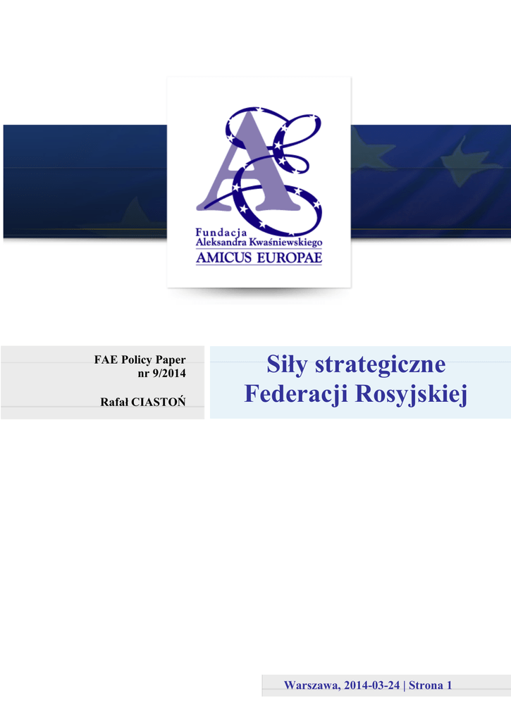 FAE Policy Paper nr 9/2014 Rafał CIASTOŃ Siły strategiczne Federacji Rosyjskiej Warszawa, 2014-03-24 | Strona 1 Siły strategiczne Federacji Rosyjskiej FAE Policy Paper nr 9/2014 Rafał Ciastoń Federacja Rosyjska może pochwalić się statusem supermocarstwa wyłącznie w zakresie jednej dziedziny – ilości (i stopnia nowoczesności) posiadanej broni jądrowej. Jeśli przyjrzeć się procesowi modernizacji Strategicznych Wojsk Rakietowych (SWR) oraz morskiego i lotniczego komponentu rosyjskich sił nuklearnych, łatwo zauważyć, że należy on do najbardziej ambitnych programów modernizacyjnych sił zbrojnych w ogóle. Jakie są tego powody? Na lądzie… Podstawą rosyjskiej (a wcześniej i radzieckiej) triady strategicznej były od zawsze międzykontynentalne pociski balistyczne bazowania lądowego (ICBM). Obecnie SWR posiadają ok. 300 pocisków1, należących do pięciu typów, przy czym tylko dwa z nich należy uznać za nowoczesne, pozostałe trzy mają zostać wycofane ze służby w ciągu najbliższych ośmiu lat. Najwcześniej, bo do 2019 r., znikną najmniej liczne SS-19 (oznaczenie zachodnie), których 30 sztuk znajduje się dziś na uzbrojeniu 60. i 28. Gwardyjskiej Dywizji Rakiet. Dwa lata później ze stanów zostaną wycofane ostatnie pociski SS-25, stanowiące dziś wyposażenie pięciu dywizji (łącznie 117 szt.), zaś w roku następnym najpotężniejsze, dziesięciogłowicowe SS-18 (46 szt. w 13. i 62. Dywizji Rakiet). Dzięki tym posunięciom do 2016 r. współczynnik systemów uznawanych za nowoczesne w SWR ma wynieść 60 proc., zaś do roku 2021 - 98 proc. stanu. 60. i 54. Gwardyjska Dywizja Rakiet użytkują również pociski SS-27 (Topol-M), pierwsza z nich posiada 60 rakiet w wersji przystosowanej do odpalania z silosów, druga 18 zestawów mobilnych. Rozmieszczane od 1997 r. Topole-M do niedawna były najnowocześniejszymi pociskami rodziny ICBM w rosyjskim arsenale, ich produkcja została już jednak zakończona, zaś ich następcami są pociski Jars (oznaczenie zachodnie SS-27 mod.2 lub SS-29). Obecnie 54. i 39. Gwardyjskie oraz 42. Dywizja Rakiet SWR posiadają łącznie 33 zestawy. Docelowo pociski te mają znaleźć się na uzbrojeniu pięciu lub sześciu dywizji, przy czym w składzie każdej z nich sformowane zostaną trzy lub cztery pułki z dziewięcioma pociskami w każdym. Jars był dotychczas produkowany wyłącznie w wersji mobilnej, Dane ilościowe za: Kristensen Hans M., Norris Robert S., Russian nuclear forces 2014, Bulletin of the Atomic Scientists 2014 70:75 1 Warszawa, 2014-03-24 | Strona 2 Siły strategiczne Federacji Rosyjskiej FAE Policy Paper nr 9/2014 Rafał Ciastoń najprawdopodobniej w tym roku do produkcji trafi również wersja silosowa. Należy także zaznaczyć, że po wygaśnięciu układu START I, ograniczającego systemy wielogłowicowe (MIRV), Rosjanie powrócili do produkcji systemów tego rodzaju. Jars może przenosić cztery do sześciu głowic oraz dodatkowo środki służące zmyleniu systemów przeciwrakietowych. Oprócz produkcji Jarsów, Moskwa pracuje obecnie nad kolejnymi systemami – napędzanym paliwem stałym pociskiem Rubież oraz pociskiem na ciekły materiał pędny, w kodzie zachodnim oznaczonym jako Sarmat. Rubież, którego wprowadzenie do służby jeszcze do niedawana zapowiadano na rok 2014, pojawi się w linii zapewne w przyszłym roku. Jest to również system mobilny, mniejszy i lżejszy od Jarsa, niekiedy określany mianem jego „tańszej wersji”. Wicepremier FR D. Rogozin nazwał go także „zabójcą systemów antyrakietowych”, gdyż prędkość i zdolności manewrowe głowicy mają uniemożliwiać jakąkolwiek próbę jej przechwycenia. Sarmat to z kolei powrót do koncepcji ciężkich pocisków na paliwo ciekłe, których ostatnim przedstawicielem był SS-18; obecnie nowa konstrukcja ma zastąpić w rosyjskim arsenale właśnie te osławione rakiety. Będzie to oczywiście pocisk przystosowany do odpalania wyłącznie z silosów, wielogłowicowy, a jego wprowadzenie do służby ma nastąpić między rokiem 2018 a 2022 (czyli najpóźniej równolegle z wycofaniem ostatnich SS-18). Rosja zamierza także powrócić do idei wykorzystania systemów kolejowych. Dowodzący SWR gen. S. Karajew zapowiedział, iż do roku 2020 tego rodzaju zestawy zostaną na nowo wprowadzone do służby, a dzięki wykorzystaniu głowic w układzie MIRV pojedynczy pociąg będzie dysponował siłą ognia porównywalną z pełną dywizją rakiet jednogłowicowych. Pociskiem wykorzystywanym w zestawie będzie najprawdopodobniej odpowiednio zmodyfikowana wersja Jarsa. … na morzu… Rosyjska flota nuklearnych strategicznych okrętów podwodnych (SSBNs) to dziś sześć okrętów klasy Delta IV oraz trzy klasy Delta III. Uzbrojenie każdego z okrętów pierwszej z wymienionych klas stanowi 16 czterogłowicowych rakiet (SLBM) SS-N-23 M1 Sineva, w wypadku drugiego typu jest to analogiczna ilość trzygłowicowych SS-N-18 M1. Znajdujący się wciąż w służbie ostatni z okrętów klasy Typhoon służy jedynie jako platforma Warszawa, 2014-03-24 | Strona 3 Siły strategiczne Federacji Rosyjskiej FAE Policy Paper nr 9/2014 Rafał Ciastoń doświadczalna dla wciąż nie uznawanych za w pełni operacyjne sześciogłowicowych pocisków Buława (SS-N-32). Buławy, będące w istocie pochodną Topola-M (ok. 70 proc. wspólnych podzespołów), stanowić mają uzbrojenie nowych okrętów klasy Boriej (proj. 955). Dwie jednostki tego typu zostały już przyjęte do służby (jednakże bez stanowiących ich podstawowe uzbrojenie rakiet), trzecia powinna zostać przyjęta przed końcem bieżącego roku, kolejne dwie między 2015 a 2018 r., a zakończenie budowy liczącej ogółem osiem okrętów serii planowane jest ok. 2020–2022 r. Czwarty i kolejne Borieje mają należeć do zmodyfikowanego typu proj. 955A. Pojawiające się wcześniej doniesienia, iż modyfikacja ta może obejmować m.in. zwiększenie ilości przenoszonyc
