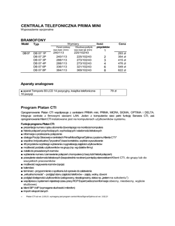 Oprogramowanie Platan CTI współpracuje z centralami PRIMA mini, PRIMA, MICRA, SIGMA, OPTIMA i DELTA.