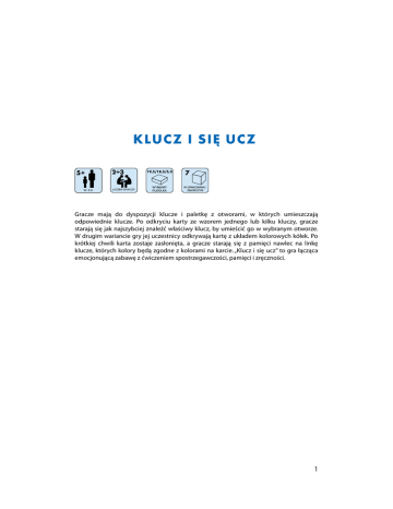 Gracze mają do dyspozycji klucze i paletkę z otworami, w których umieszczają odpowiednie klucze. Po odkryciu karty ze wzorem jednego lub kilku kluczy, gracze starają się jak najszybciej znaleźć właściwy klucz, by umieścić go w wybranym otworze. W drugim wariancie gry jej uczestnicy odkrywają kartę z układem kolorowych kółek. Po krótkiej chwili karta zostaje zasłonięta, a gracze starają się z pamięci nawlec na linkę klucze, których kolory będą zgodne z kolorami na karcie. „Klucz i się ucz” to gra łącząca emocjonującą zabawę z ćwiczeniem spostrzegawczości, pamięci i zręczności. 1