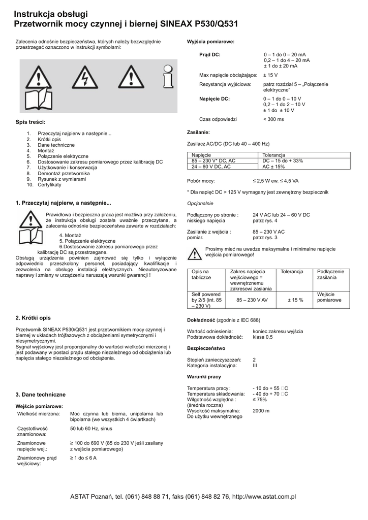 Instrukcja obsługi Przetwornik mocy czynnej i biernej SINEAX P530