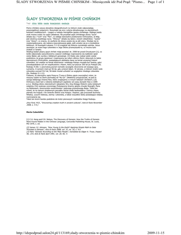 ŚLADY STWORZENIA W PIŚMIE CHIŃSKIM