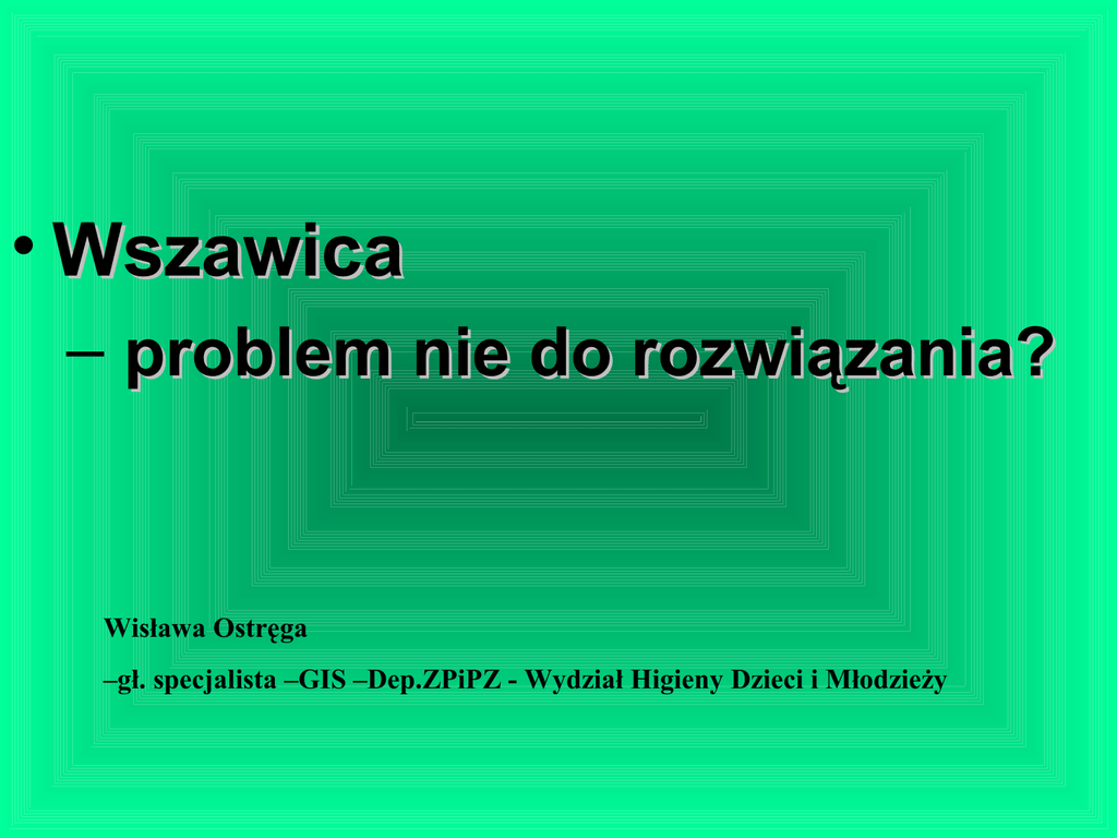 • Wszawica – problem nie do rozwiązania? Wisława Ostręga –gł. specjalista –GIS –Dep.ZPiPZ - Wydział Higieny Dzieci i Młodzieży • Zasady postępowania w przypadku wystąpienia chorób zakaźnych reguluje ustawa o chorobach zakaźnych i zakażeniach z dnia 6 września 2001 (Dz. U. 2001, Nr 126, poz. 13849), która określa obowiązki w zakresie zapobiegania i leczenia chorób zakaźnych i zakażeń osób przebywających na terytorium Polski. • Ustawa w rozdziale 3 reguluje postępowanie w przypadku podejrzenia lub rozpoznania choroby zakaźnej lub zakażenia oraz w przypadku stwierdzenia zgonu z powodu choroby zakaźnej: • Art. 6 • Badaniom do celów sanitarno-epidemiologicznych podlegają: • kobiety w ciąży, które były narażone na zakażenie HIV, oraz noworodki urodzone przez matki zakażone HIV lub krętkiem bladym - badaniom w kierunku tych zakażeń, • osoby, które były narażone na zakażenie poprzez kontakt z osobami zakażonymi, chorymi lub materiałem zakaźnym - badaniom w kierunku błonicy, cholery, czerwonki, duru brzusznego, durów rzekomych A, B i C, nagminnego porażenia dziecięcego, • nosiciele i ozdrowieńcy po błonicy, cholerze, durze brzusznym, durach rzekomych A, B, C, salmonellozach i czerwonce wywołanej pałeczkami Shigella - badaniom na nosicielstwo, • osoby podejmujące lub wykonujące prace, przy wykonywaniu których istnieje możliwość przeniesienia zakażenia na inne osoby badaniom w celu identyfikacji zakażenia prątkami gruźlicy, pałeczkami duru brzusznego, durów rzekomych A, B i C, innymi pałeczkami z rodzaju Salmonella i Shigella, a także badaniom w celu identyfikacji zakażenia innymi czynnikami chorobotwórczymi określonymi w wykazie, o którym mowa w ust. 3a, • uczniowie szkół oraz studenci szkół wyższych kształcących się do wykonywania prac, o których mowa w pkt 4 - badaniom w celu identyfikacji zakażenia prątkami gruźlicy, pałeczkami duru brzusznego, durów rzekomych A, B i C, innymi pałeczkami z rodzaju Salmonella i Shigella, a także badaniom w celu identyfikacji zakażenia innymi czynnikami chorobotwórczymi określonymi w wykazie, o którym mowa w ust. 3a. • • • • • Art. 20 1. Lekarz lub felczer, który podejrzewa lub rozpoznaje chorobę zakaźną lub zakażenie, jest obowiązany pouczyć pacjenta, jego ustawowego przedstawiciela lub osobę sprawującą nad pacjentem faktyczną opiekę o środkach ostrożności zapobiegających przeniesieniu zakażenia na inne osoby oraz o obowiązku wynikającym z art. 7 ust. 2. 3. W przypadku podejrzenia zakażenia lub zachorowania na chorobę zakaźną, określoną w wykazie, o którym mowa w art. 3 ust. 1, lub rozpoznania takiej choroby lekarz lub felczer ma obowiązek zgłoszenia tego faktu, w ciągu 24 godzin, właściwemu ze względu na miejsce zachorowania powiatowemu (portowemu) inspektorowi sanitarnemu, z zastrzeżeniem ust. 4-6. 459. W zgłoszeniach, o których mowa w ust. 3-6, należy zamieścić imię, nazwisko, adres i numer telefonu lekarza dokonującego zgłoszenia. 10. Minister właściwy do spraw zdrowia określi, w drodze rozporządzenia, wzory formularzy zgłoszeń, o których mowa w ust. 3-6, oraz sposób ich przekazywania, uwzględniając w szczególności wymogi zabezpieczenia ochrony danych osobowych. • Art. 25 • W przypadku stwierdzenia lub podejrzenia choroby zakaźnej lub zakażenia właściwy inspektor sanitarny, w przypadkach określonych w ustawie, w drodze decyzji administracyjnej, może nakazać poddanie się chorego lub podejrzanego o zachorowanie lub zakażenie badaniom, o których mowa w art. 6 ust. 1 pkt 1 i 2, obowiązkowemu leczeniu, obowiązkowej hospitalizacji, izolacji, kwarantannie lub nadzorowi epidemiologicznemu. • W celu zapobieżenia szerzeniu się choroby zakaźnej powiatowy (portowy) inspektor sanitarny, w drodze decyzji administracyjnej, może: – nakazać podejrzanemu o chorobę zakaźną lub podejrzanemu o zakażenie wstrzymanie się od wykonywania pracy lub uczęszczania do przedszkoli, szkół i placówek działających w systemie oświaty oraz szkół wyższych, – zakazać korzystania z wody do picia i na potrzeby gospodarcze pochodzącej z ujęć, co do których istnieje podejrzenie skażenia, – nakazać przeprowadzenie niezbędnych zabiegów z zakresu dezynfekcji, dezynsekcji i deratyzacji, – wprowadzić czasowy zakaz wstępu do pomieszczeń skażonych, – wprowadzić zakaz spożywania żywności podejrzanej o skażenie, a w razie potrzeby zarządzić jej odkażenie, zniszczenie lub przeznaczenie do innych celów niż spożywcze, z wyjątkiem przeznaczenia do żywienia zwierząt, – nakazać sekcję zwłok osoby zmarłej na chorobę zakaźną lub podejrzanej o taką chorobę, – zakazać wykonywania sekcji zwłok, gdy sekcja zwłok mogłaby prowadzić do zakażenia osób lub skażenia środowiska, chyba że zachodzi podejrzenie, że zgon nastąpił w wyniku popełnienia przestępstwa. • Art. 35 • 1. Kto: • wbrew ciążącemu na nim obowiązkowi, o którym mowa w art. 20 ust. 3-6, oraz art. 21 ust. 1-3, nie zgłasza przypadków zakażenia, zachorowania, podejrzenia o zakażenie, zachorowanie lub zgonu na chorobę zakaźną, • nie stosuje się do obowiązków wynikających z art. 5 i 13, nakazów lub zakazów określonych w art. 25 • - podlega grzywnie. 2. Postępowanie w sprawach o czyny określone w ust. 1 jest prowadzone na podstawie przepisów Kodeksu postępowania w sprawach o wykroczenia • Obowiązek zgłaszania choroby zakaźnej lub zakażenia spoczywa na lekarzu lub felczerze. Sposób zgłaszania reguluje Rozporządzenie Ministra Zdrowia z dnia 8 września 2005r. zmieniające rozporządzenie w sprawie wzorów formularzy zgłoszeń podejrzenia zakażenia lub zachorowania na chorobę zakaźną, rozpoznania zachorowania na chorobę zakaźną oraz podejrzenia lub stwierdzenia zgonu z powodu choroby zakaźnej oraz sposobu ich przekazywania (Dz. U. 2005, Nr 1
