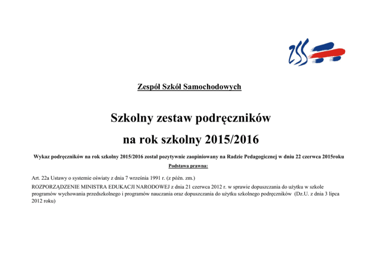 Szkolny zestaw podręczników na rok szkolny 2015/2016