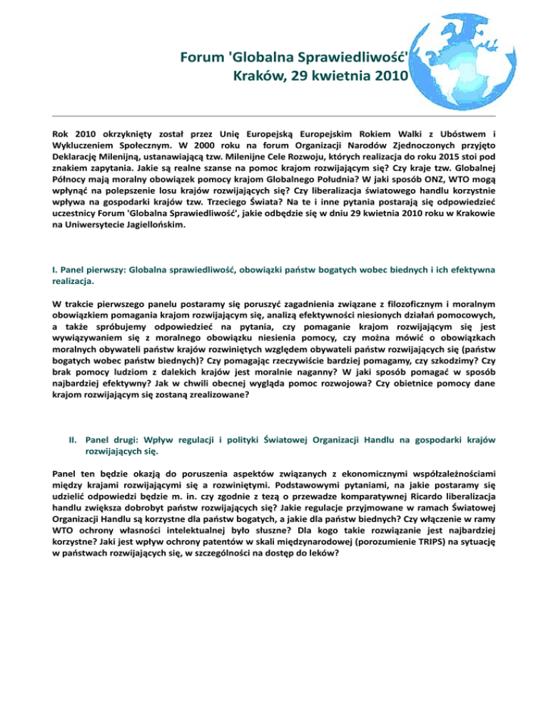 Forum `Globalna Sprawiedliwość` Kraków, 29 kwietnia 2010