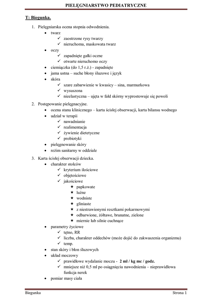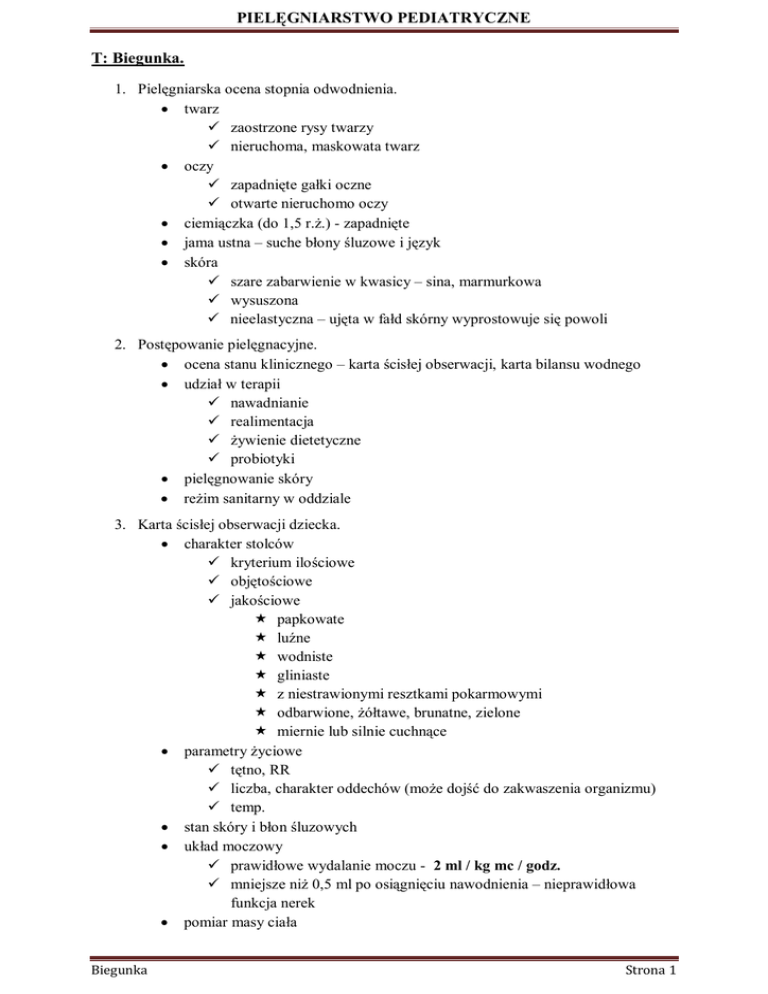PIELĘGNIARSTWO PEDIATRYCZNE T: Biegunka.