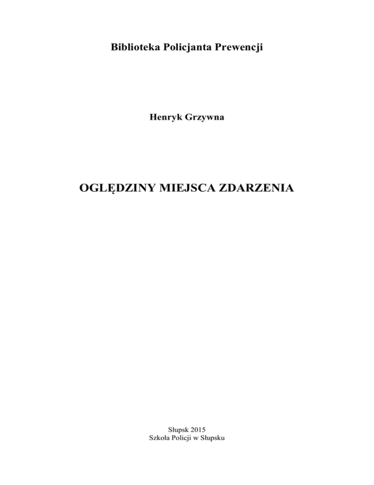 Biblioteka Policjanta Prewencji Henryk Grzywna OGLĘDZINY MIEJSCA ZDARZENIA Słupsk 2015 Szkoła Policji w Słupsku Materiał dydaktyczny opracowany w Szkole Policji w Słupsku do użytku wewnętrznego Policji – może być reprodukowany przez policjantów przygotowujących się do realizacji zadań służbowych. Materiału nie wolno reprodukować ani wykorzystywać w innych celach lub dla innych podmiotów zewnętrznych bez zgody Wydawcy. Według stanu prawnego na styczeń 2015 r. Wydawnictwo Szkoły Policji w Słupsku Redakcja tekstu: Grażyna Szot Redakcja techniczna: Zenon Trzciński, Grażyna Szot Projekt okładki: Marcin Jedynak Wydanie VI, poprawione Szkoła Policji w Słupsku, 76–200 Słupsk, ul. Kilińskiego 42 www.slupsk.szkolapolicji.gov.pl e-mail: [email protected] Słupsk 2015 2 Spis treści Wstęp ...................................................................................................................................................... 1. Kryminalistyczne badanie miejsca zdarzenia ................................................................... 2. Skład i zadania członków grupy operacyjno-procesowej ............................................ 3. Podstawy prawne i cele oględzin oraz zasady ich przeprowadzania ...................... 3.1. Podstawy prawne czynności oględzinowych .......................................................... 3.2. Zasady prowadzenia oględzin ........................................................................................ 3.3. Metody przeprowadzania oględzin miejsca zdarzenia ........................................ 3.4. Etapy (stadia) i fazy oględzin ........................................................................................ 4. Zasady dokumentowania oględzin ........................................................................................ 4.1. Rodzaje dokumentów i podstawy prawne dokumentowania oględzin wynikające z kodeksu postępowania karnego i kodeksu postępowania w sprawach o wykroczenia ............................................................................................. 4.2. Dokumentacja podstawowa (protokół oględzin) i zasady jej sporządzania ................................................................................................................... 4.3. Szkice kryminalistyczne .................................................................................................. 4.4. Materiał poglądowy w postaci zdjęć (rodzaje zdjęć) ........................................... 4.5. Notatka urzędowa dotycząca wniosków pooględzinowych .............................. 4.6. Najczęściej popełniane błędy i ich skutki ................................................................. Pytania kontrolne ................................................................................................................................. Bibliografia ............................................................................................................................................ 3 5 7 8 10 11 12 14 16 23 23 25 27 30 30 31 32 33 4 Wstęp Celem niniejszego opracowania jest dostarczenie słuchaczom kursu zawodowego podstawowego kompendium wiedzy na temat oględzin miejsca zdarzenia. Jest to syntetyczne ujęcie wiedzy dostępnej w bogatej literaturze tego tematu. Aktywne metody nauczania – stosowane w szkolnictwie policyjnym – podyktowały konieczność zebrania w jednym opracowaniu najistotniejszych zagadnień dotyczących badania miejsca zdarzenia. Układ treści opracowania jest zgodny z obowiązującym programem nauczania realizowanym na kursie zawodowym podstawowym w Szkole Policji w Słupsku. Tytuły rozdziałów odpowiadają zagadnieniom przewidzianym do realizacji w ramach zajęć. Wcześniejsze zapoznanie się słuchacza z materiałem pozwoli mu aktywnie uczestniczyć w zajęciach. Autor ma nadzieję, że wątpliwości powstałe po zapoznaniu się słuchaczy z opracowaniem zostaną przedyskutowane podczas zajęć programowych i wzbudzą szersze zainteresowanie literaturą przedmiotu, podaną w jego końcowej części. Opracowanie zawiera zestaw pytań kontrolnych pozwalających na dokonanie własnej oceny wiedzy z podanego tematu. 5 6 1. Kryminalistyczne badanie miejsca zdarzenia Kryminalistyczne badanie miejsca zdarzenia – to zespół czynności taktycznych i technicznych, procesowych i pozaprocesowych, których celem jest uzyskanie maksymalnych informacji o zdarzeniu i osobach w nim uczestniczących. Inaczej mówiąc, jest to dokładne poznanie określonej części przestrzeni, w której coś się wydarzyło, za pomocą metod kryminalistycznych, naukowej analizy1. Śledcze badanie miejsca zdarzenia – to zespół różnorakich czynności podejmowanych na miejscu zdarzenia w związku z zaistniałym przestępstwem. W istocie chodzi tu o takie czynności, jak: – zabezpieczenie miejsca zdarzenia do czasu oględzin, – kryminalistyczne oględziny miejsca zdarzenia, – penetracja terenu połączona z przeprowadzeniem rozmów dotyczących zdarzenia, – zorganizowanie bezpośredniego pościgu za sprawcą (sprawcami), – użycie psa tropiącego, – przeszukanie, – zatrzymanie osoby, – odtworzenie na podstawie ujawnionych śladów i zebranych informacji prawdopodobnego przebiegu zdarzenia (budowanie wstępnych wersji), – eksperyment śledczy, – przesłuchanie świadka, podejrzanego, – powtórne (kontrolne) zbadanie miejsca zdarzenia i przyległego terenu, – organizacja pułapek kryminalistycznych lub zasadzki na miejscu zdarzenia, – zabezpieczenie dopływu informacji z miejsca zdarzenia (ustalenie świadków, pokrzywdzonych, domniemanych sprawców, ewentualnie ich wyglądu zewnętrznego), – działania operacyjne, polegające na praktycznym zastosowaniu odpowiednich metod pracy operacyjnej. Tak więc w skład kryminalistycznego badania miejsca zdarzenia wchodzą czynności: – procesowe (np. oględziny, przesłuchanie), – operacyjno-ro