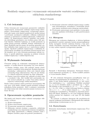 empirycznych, wyznaczenie rozkładu empirycznego (histogramu i dystrybuanty empirycznej), wyznaczanie niepewności gdy mamy serię danych pomiarowych (próbę losową)